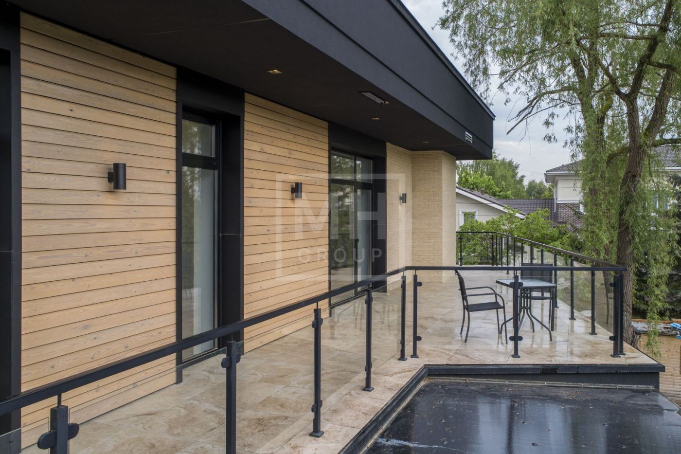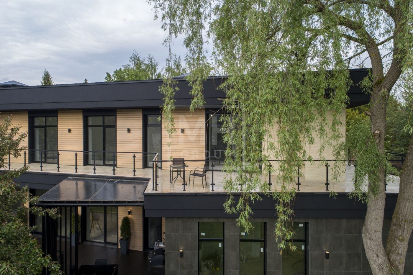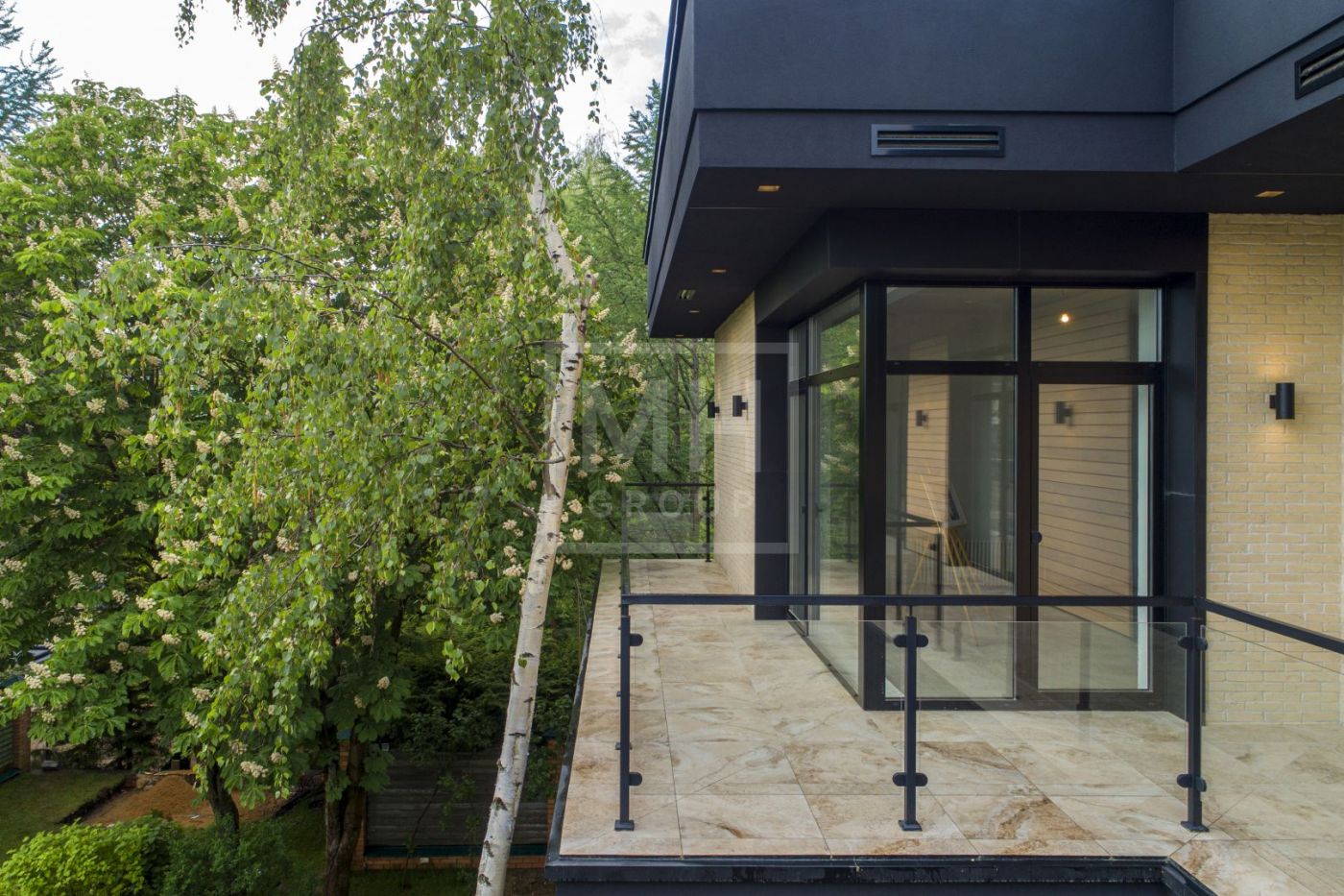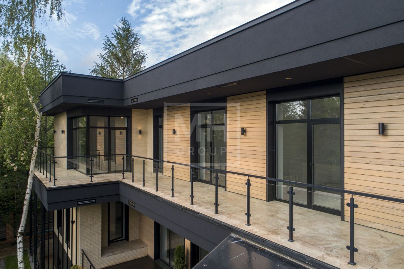 Дом в современном стиле, с удобной современной планировкой предлагается потенциальным покупателям в состоянии "под отделку". Панорамное остекление, терраса и балкон открывают красивые виды на лесные массивы. Удобная планировка позволяет адаптировать дом "под себя" и выделить под спальни от 3 до 5 комнат со своими ванными и гардеробными, при желании зону СПА можно переместить в цокольный этаж или на эксплуатируемую кровлю. На первом этаже более 100 м2 выделено под основную кухню, столовую и гостиную с камином и выходом на террасу, к основной кухне примыкает рабочая кухня. В доме предусмотрены обширные зоны хранения: 3 кладовых, 9 гардеробных, постирочная и бельевая. В цокольном этаже располагается блок для персонала и котельная, в которые предусмотрен отдельных приватный вход. На участке выполнен ландшафтный дизайн: дорожки, подсветка, газон, сохранены взрослые плодовые и декоративные деревья. Выделено место под дополнительный навес или гараж на 2 автомобиля.