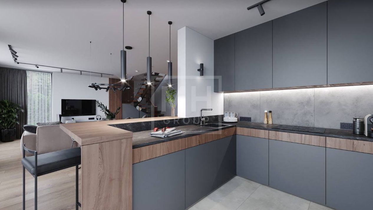 Этаж 1: Прихожая, гардеробная, кабинет, с/у, кухня/столовая/гостиная, котельная