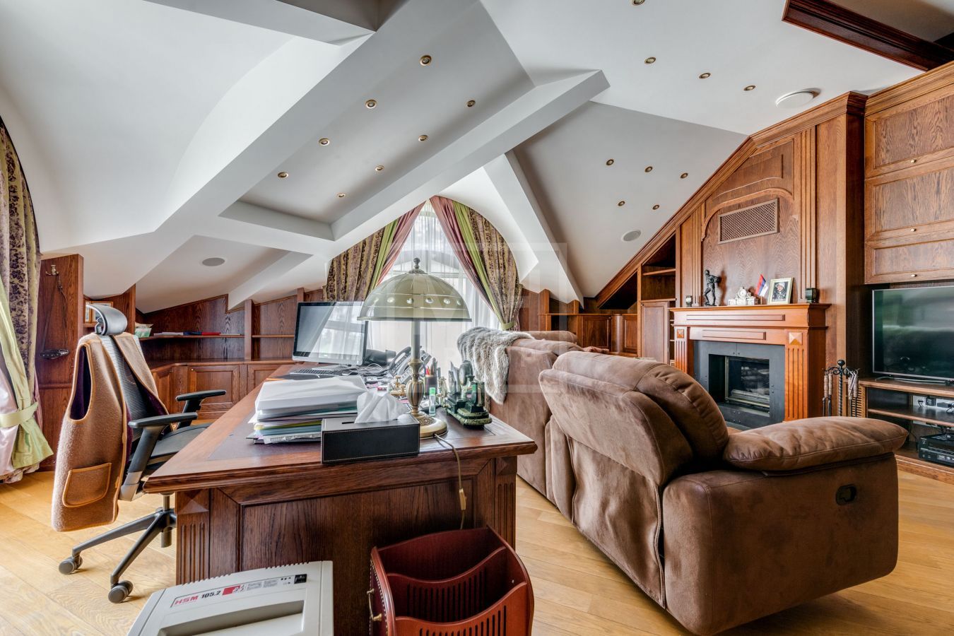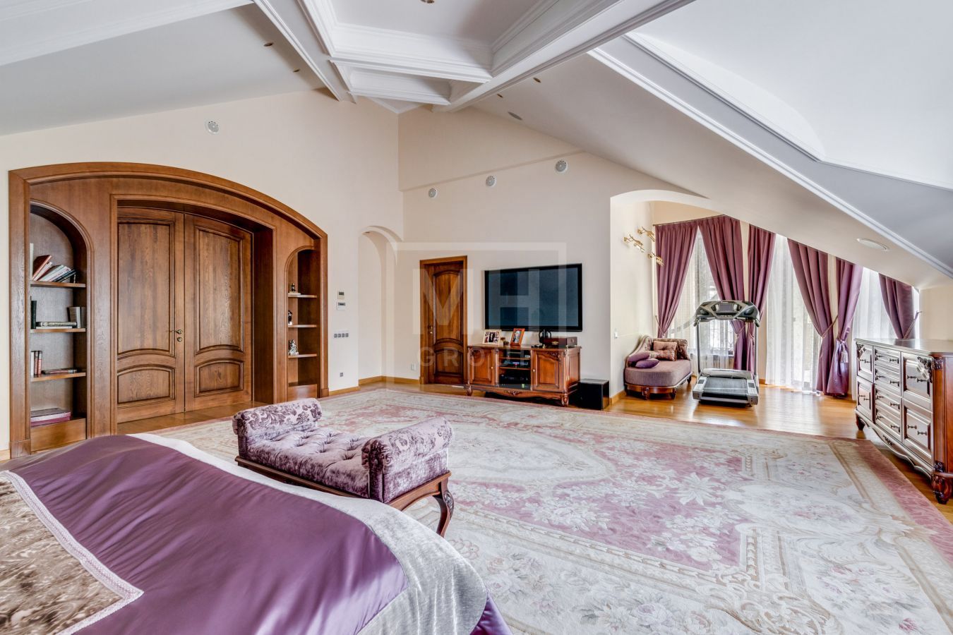 Этаж 2: мастер- спальня с балконом, с/у и гардеробной, кабинет с библиотекой и камином, две спальни с с/у и встроенными гардеробными