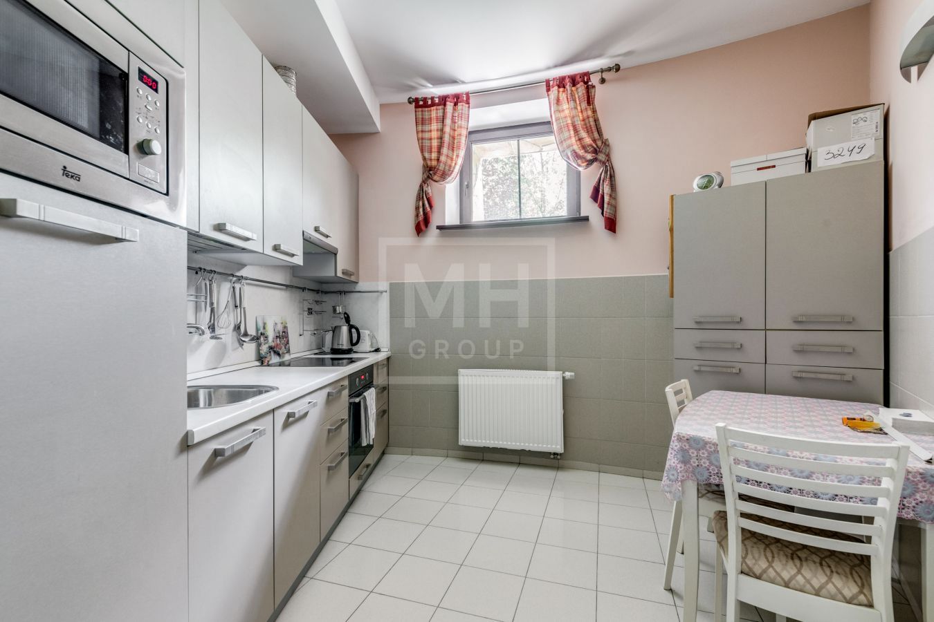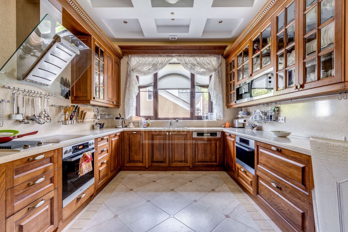 Кухня оборудована бытовой техникой Miele, встроенная мебель изготовлена по индивидуальному проекту, фасады - натуральный дуб, пол - плитка - везде установлен водяной подогрев пола.