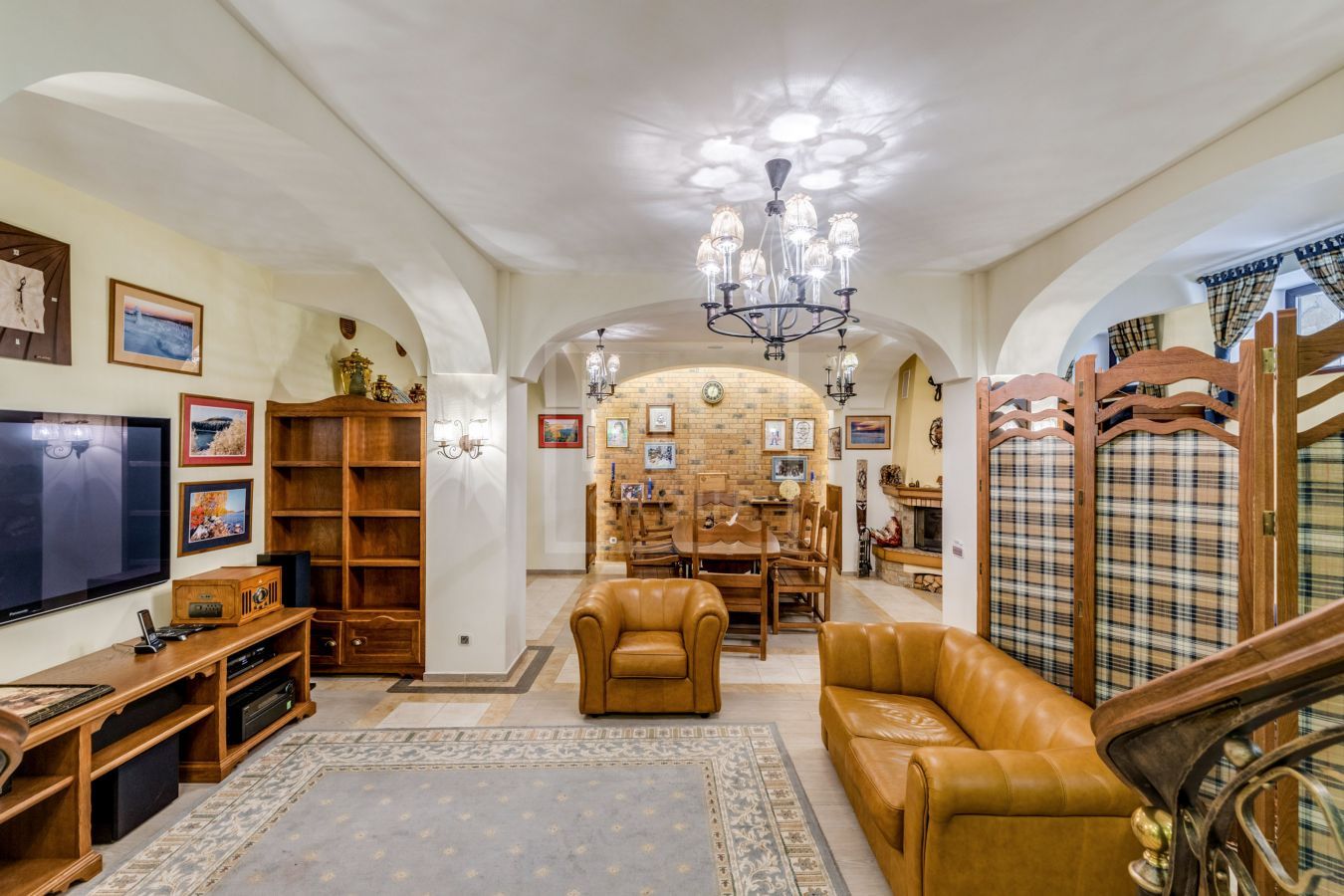 Цоколь: спа- блок с сауной, комнатой для хранения веников и трав, хаммам, джакузи, купель, душевые, с/у, комната отдыха, автономный блок для персонала (спальня, кухня, с/у), котельная, мастерская, гараж на два автомобиля