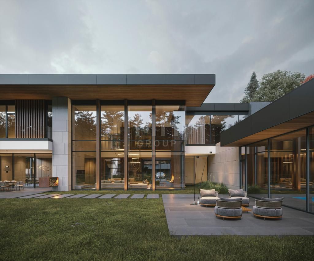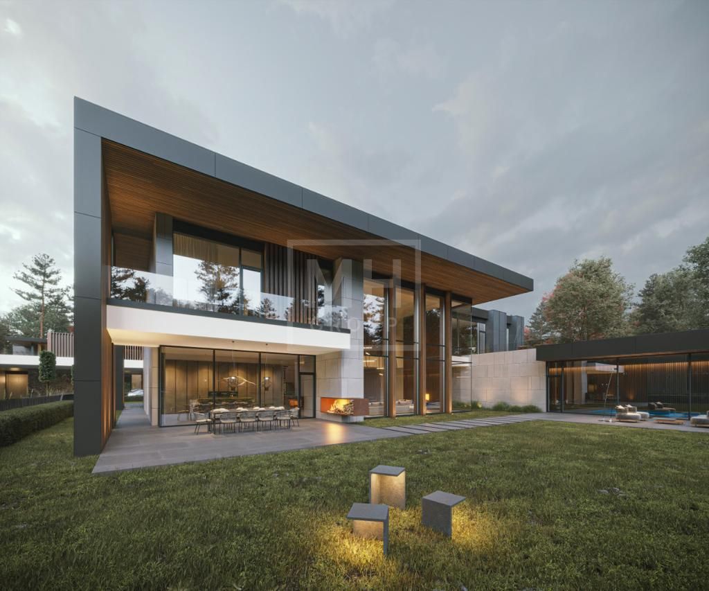 Современный стильный дом под ключ в одном из самых новых поселков в Жуковке. Архитектор проекта-Алексей Николашин, архитектурное бюро SL* project.В концепции экстерьера выдержана четкая геометрия форм. силуэт сочетает в себе строгие формы и притягательный уют. Цветовая гамма фасада из натурального Португальского камня и дерева идеально гармонирует с ландшафтом. А за открытость отвечает принцип его расположения на участке и единение с окружающей средой, а также панорамные окна по всему дому с уникальной раздвижной системой с максимально тонким алюминиевым профилем.
