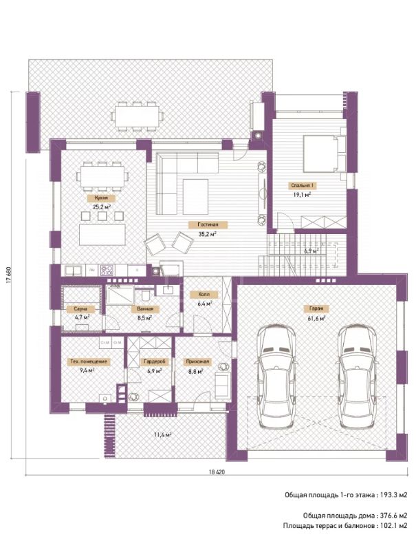 - Площадь дома376 м²