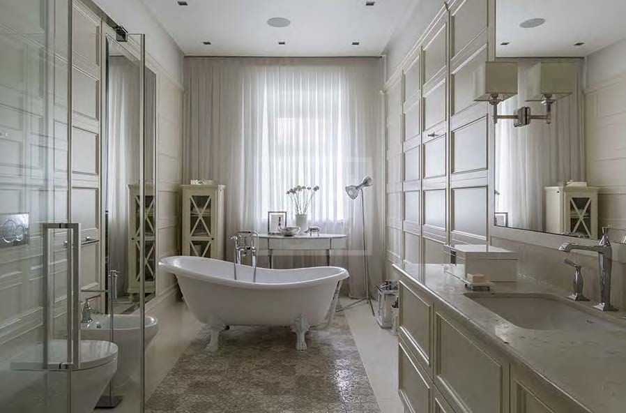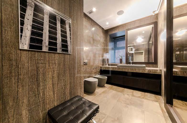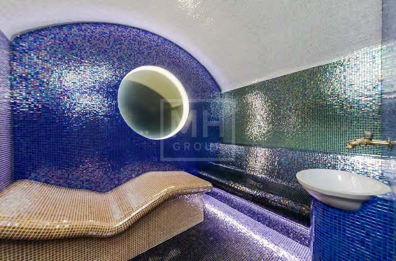 Цоколь: зона SPA с хамамом, хозяйственный блок с постирочной, тех. помещения, бойлерная, с/у, техническая помывочная. Зона SPA включает в себя зону отдыха, современный хамам, украшенный итальянской декоративной плиткой, массажную. Душевая система с хромотерапией, санузел, установлена немецкая сантехника Keuko. В доме на цокольном этаже выделенной зоной оборудован блок для персонала, с отдельной комнатой для проживания кухней и санузлом.