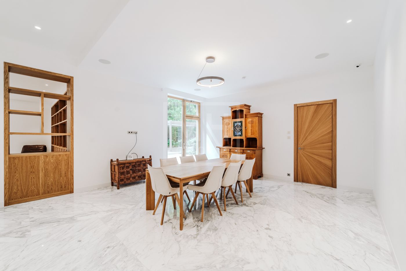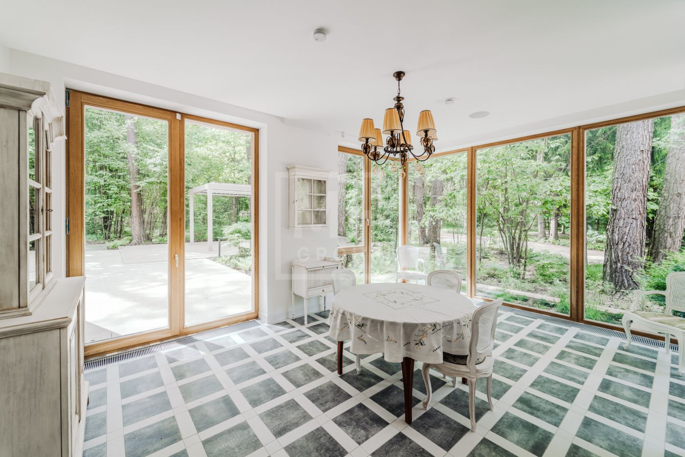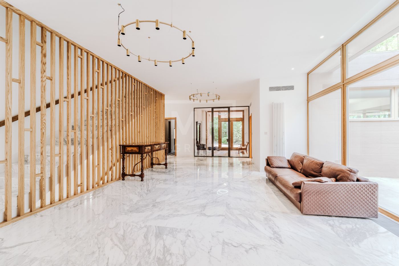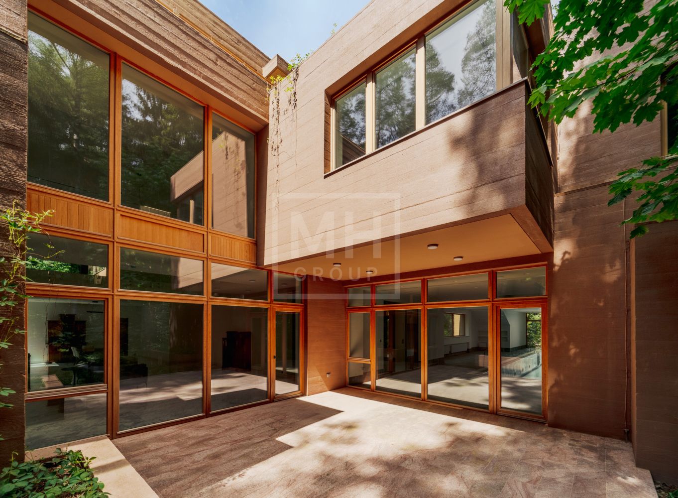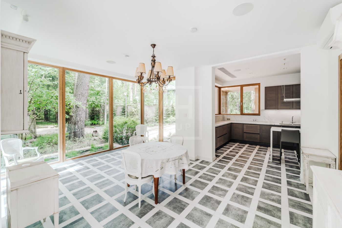 Этаж 1: прихожая, холл, гардеробная, гостевой с/у, гостиная с камином, кухня-столовая с выходом на летнее патио, гостевая спальня, спа-зона с сауной и бассейном (20 м) и душевой
