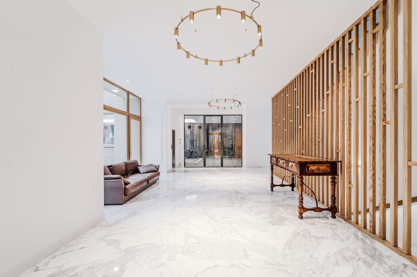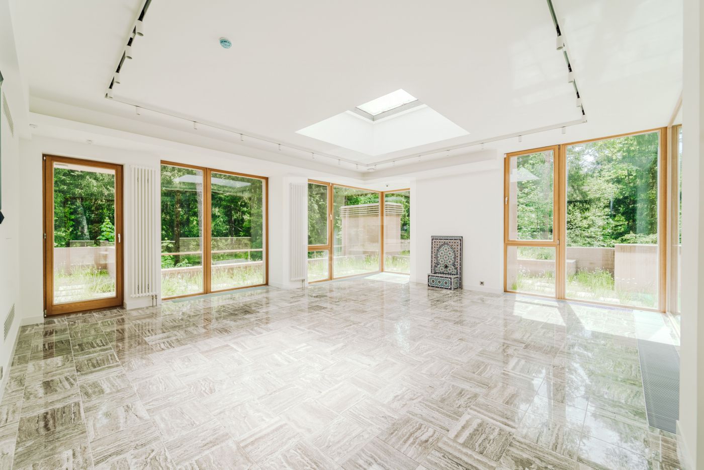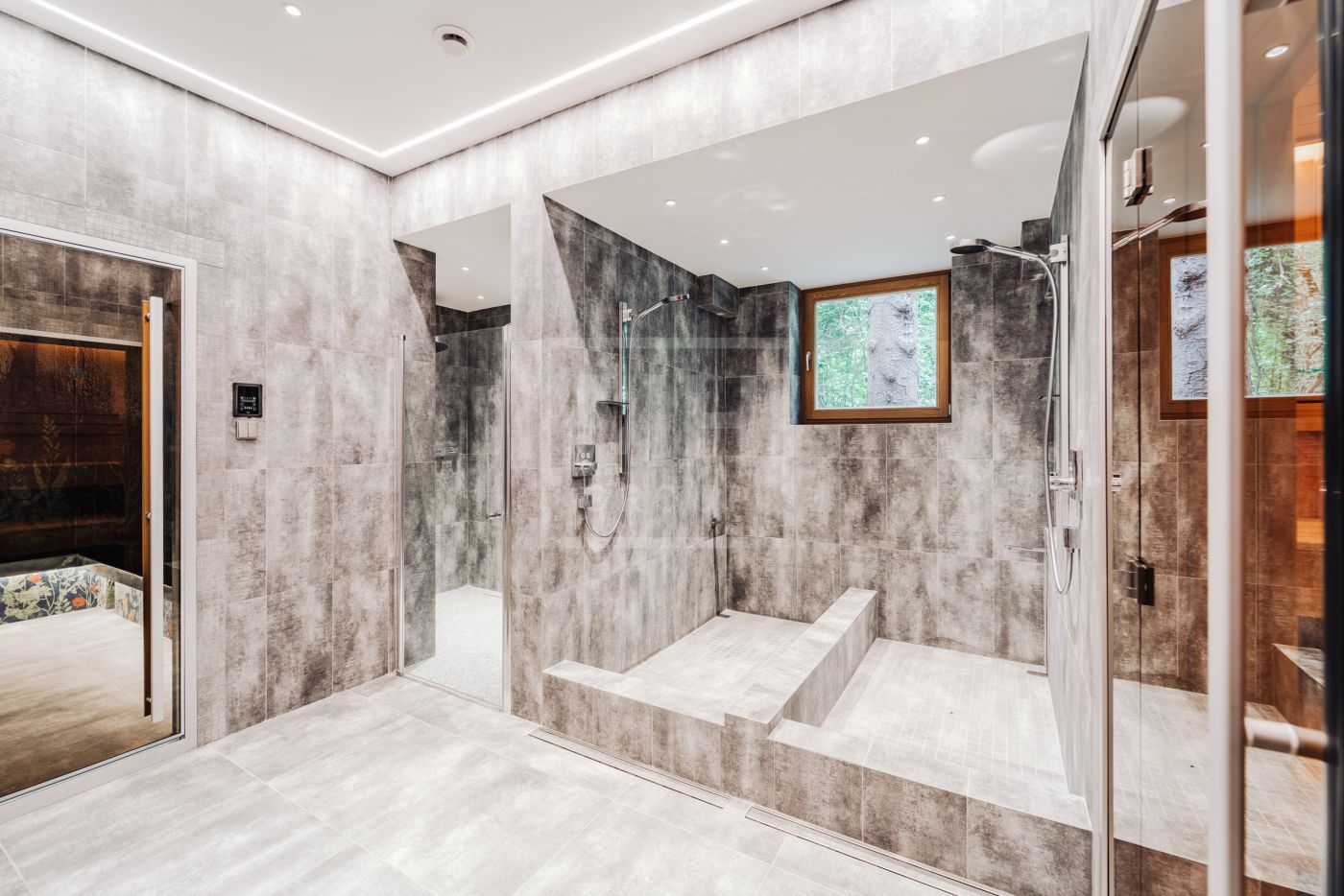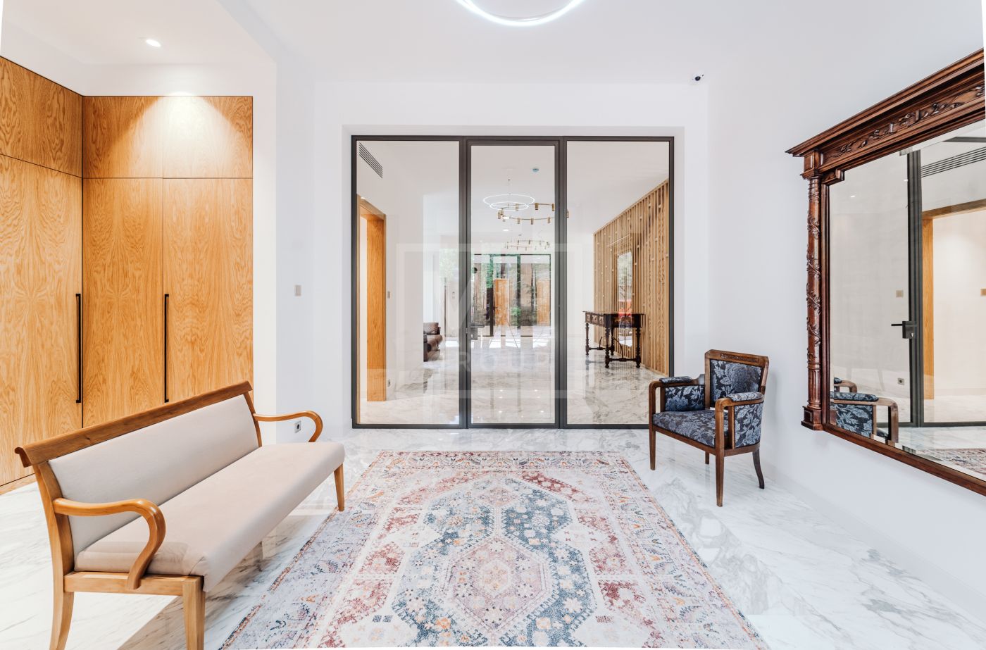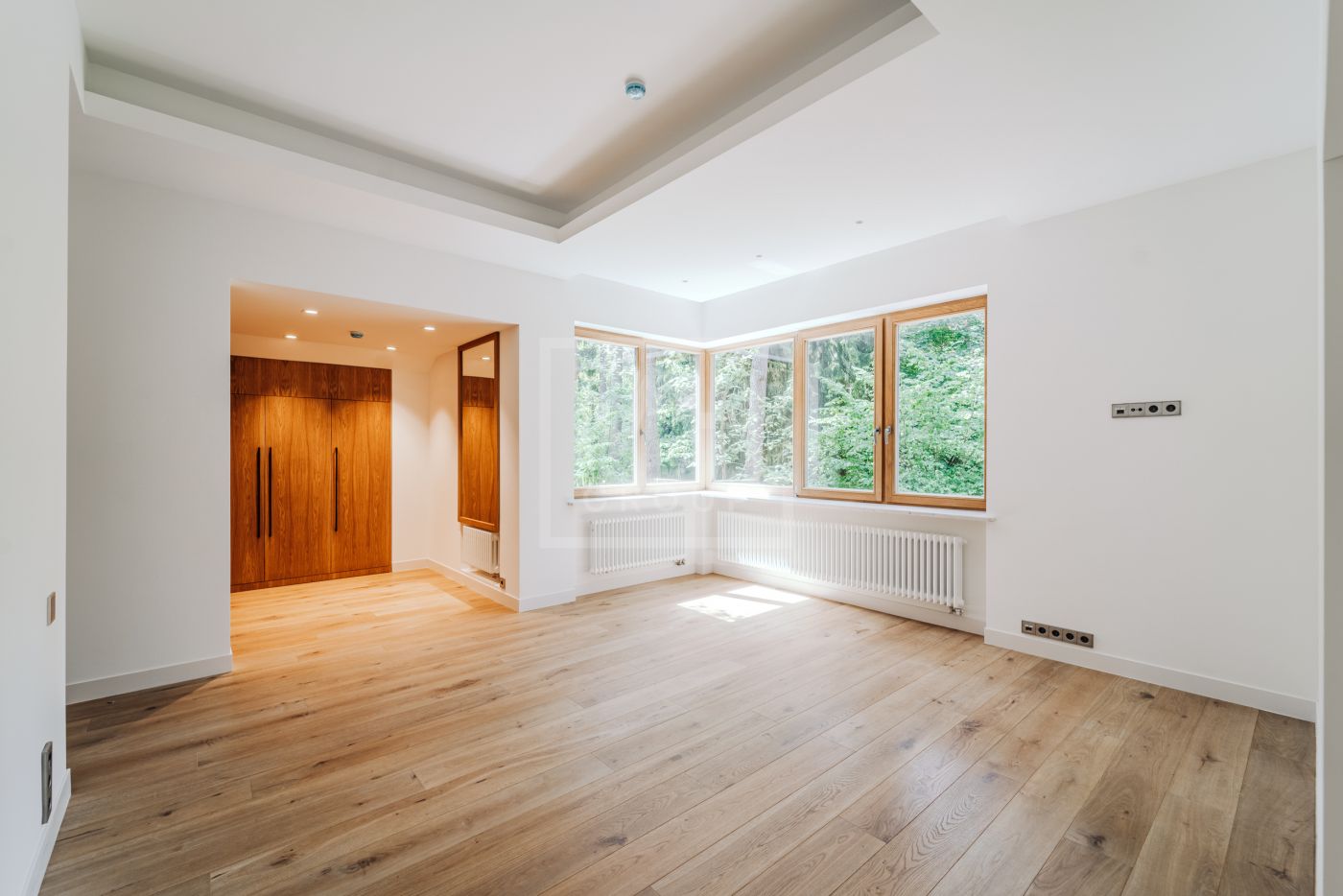 Этаж 1: прихожая, холл, гардеробная, гостевой с/у, гостиная с камином, кухня-столовая с выходом на летнее патио, гостевая спальня, спа-зона с сауной и бассейном (20 м) и душевой