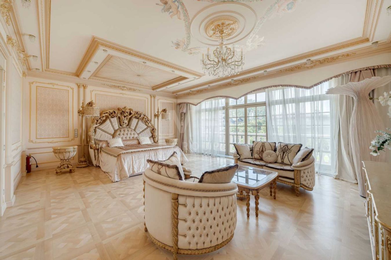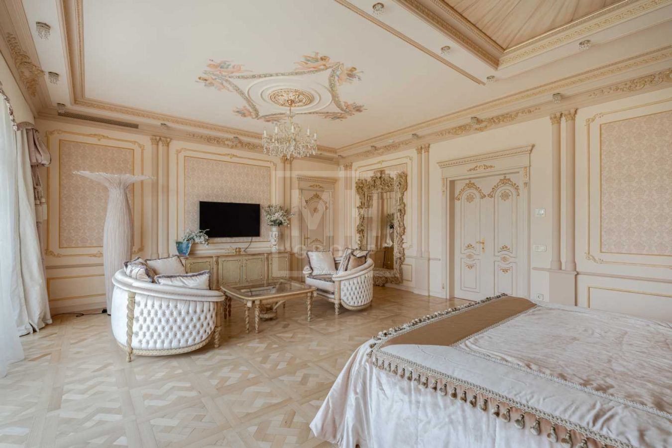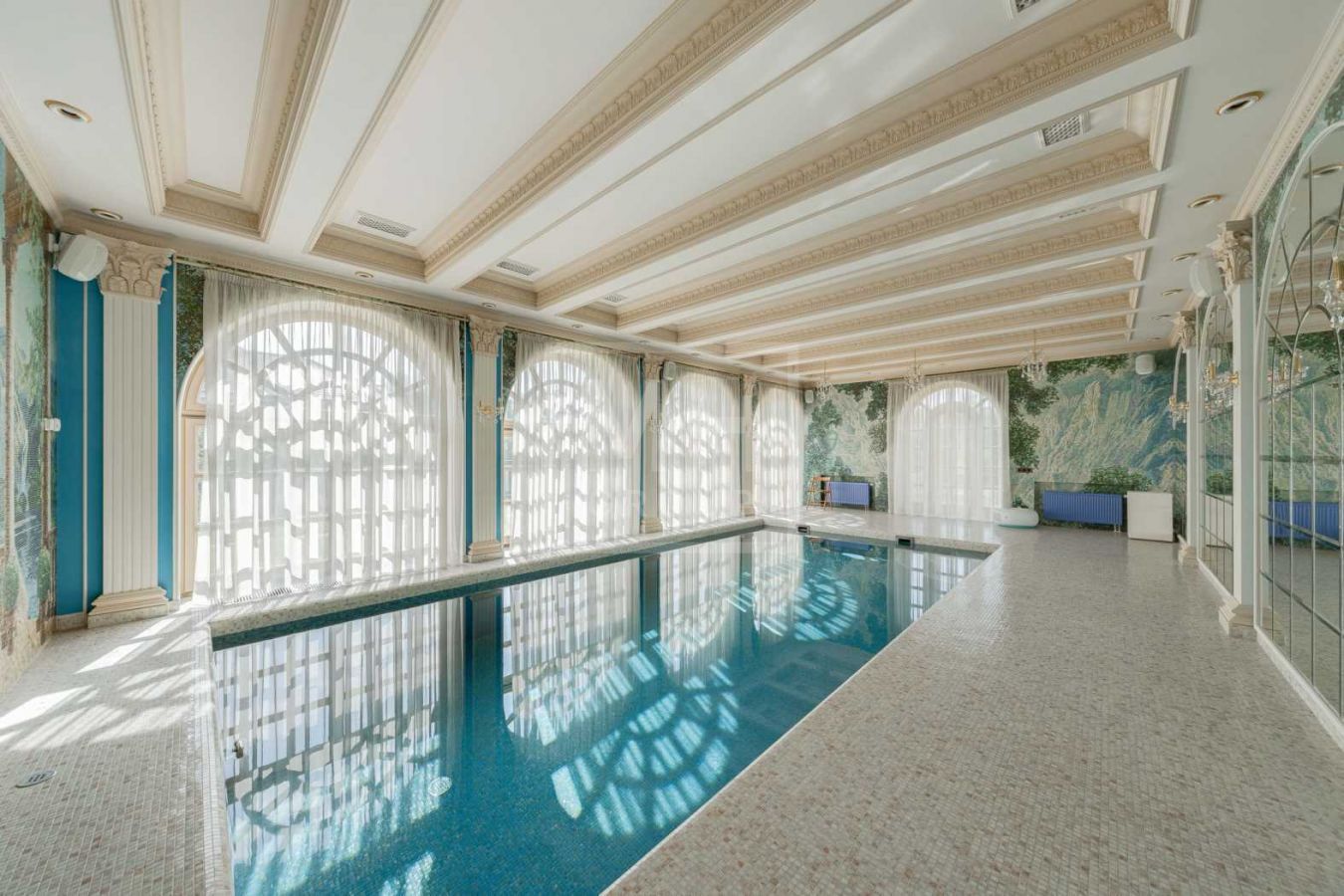 Полная отделка под ключ с мебелью: дорогие материалы, итальянская мебель, 6 спален с с/у и гардеробным, бассейн, центральная приточно-вытяжная вентиляция с увлажнением и центральное кондиционирование. Соседи полностью построены.