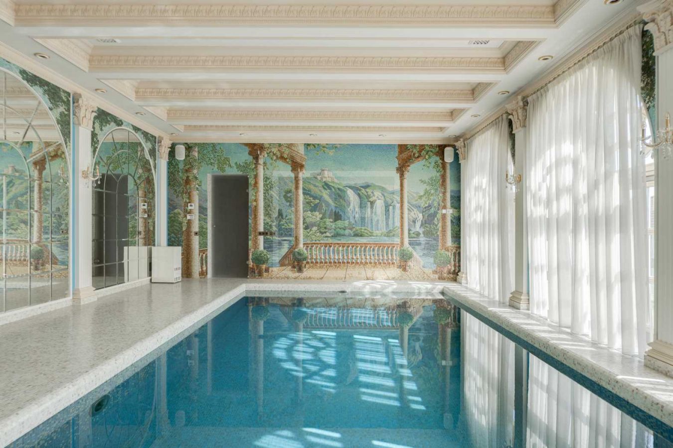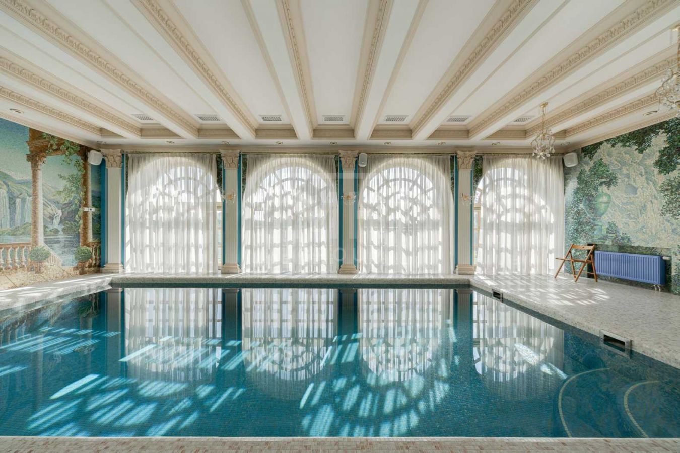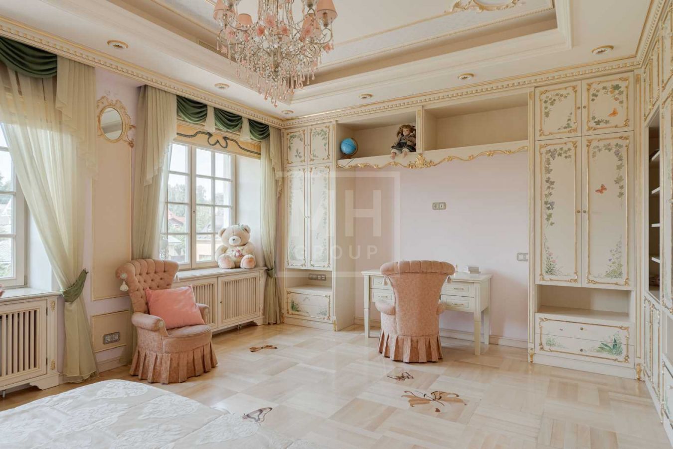 Полная отделка под ключ с мебелью: дорогие материалы, итальянская мебель, 6 спален с с/у и гардеробным, бассейн, центральная приточно-вытяжная вентиляция с увлажнением и центральное кондиционирование. Соседи полностью построены.