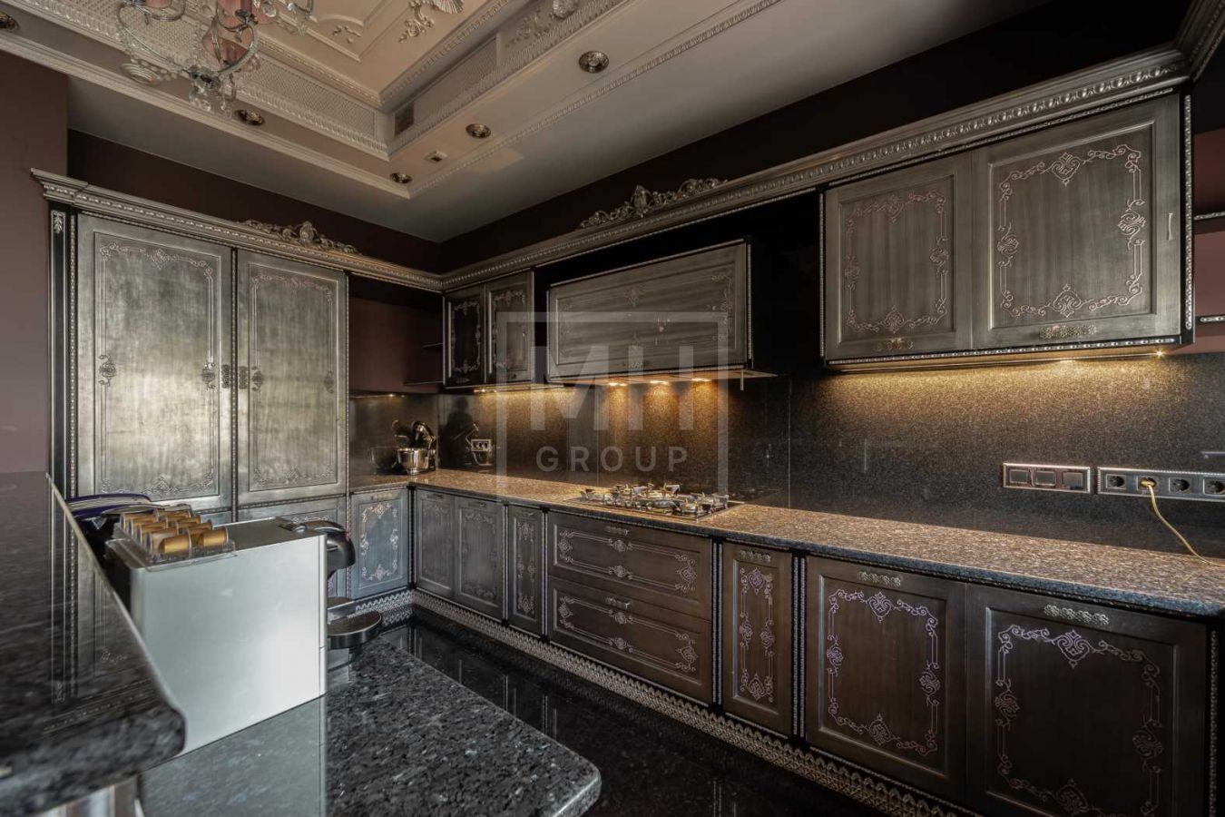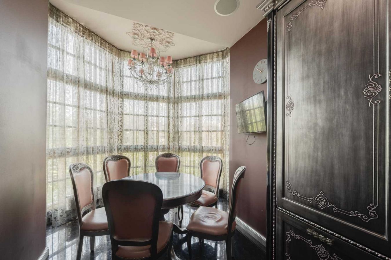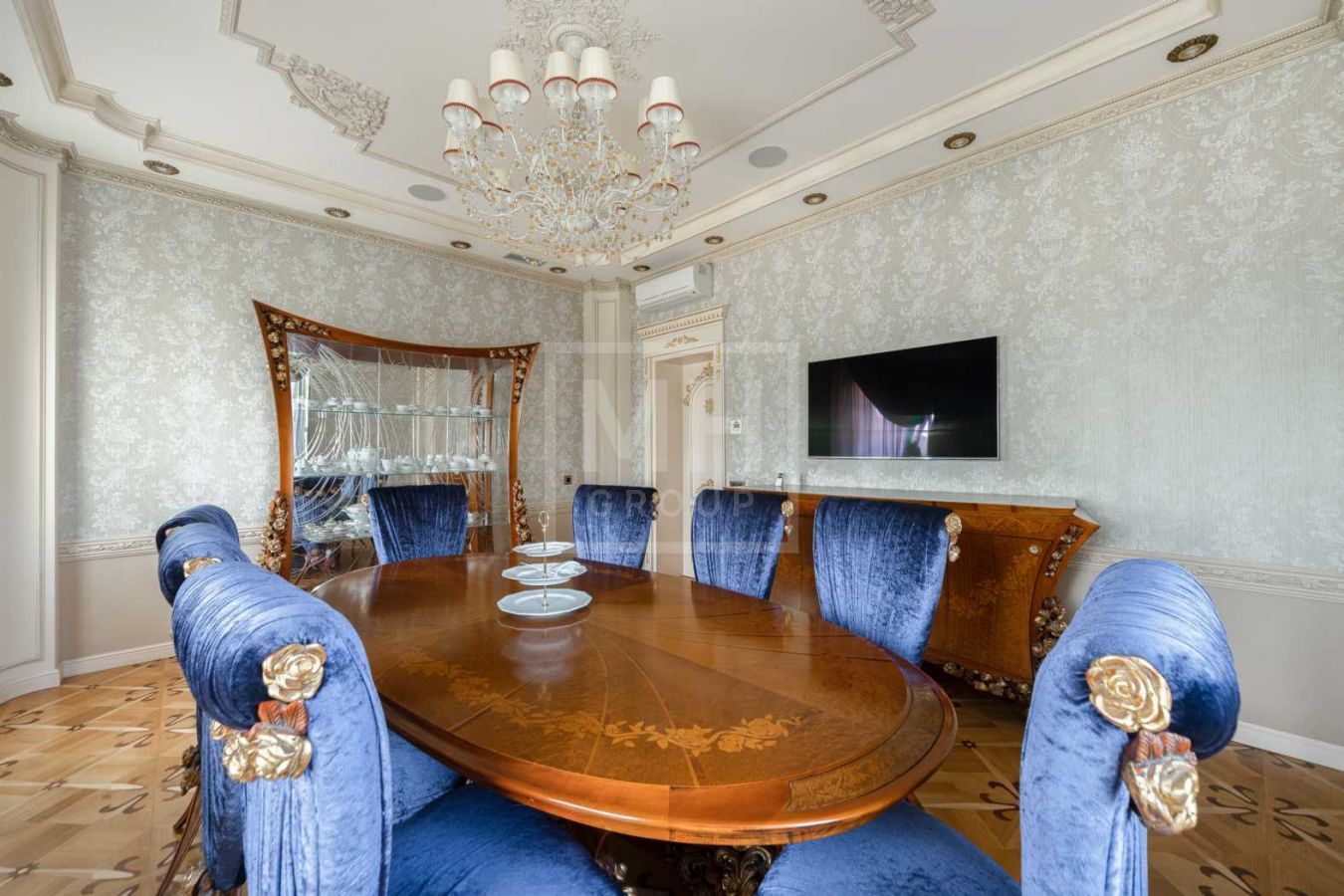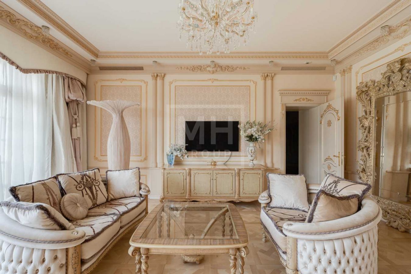 Дом с отделкой и мебелью в классическом стиле площадью 1 500 м2 на участке 53 сотки.В отделке много натуральных материалов: мрамор различных видов, натуральная мозаика, ковка, дерево. Фасад выполнен из облицовочного кирпича.
