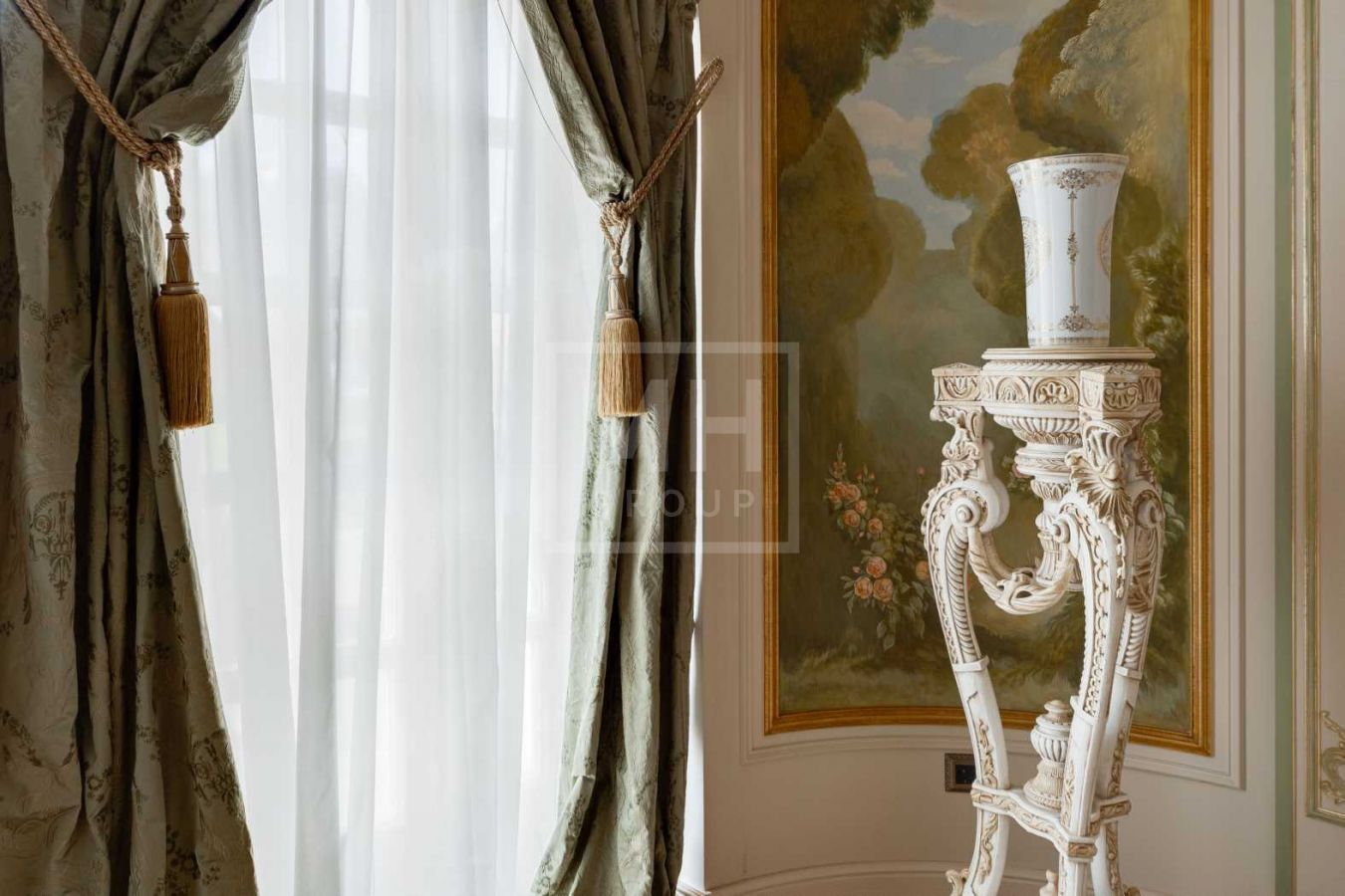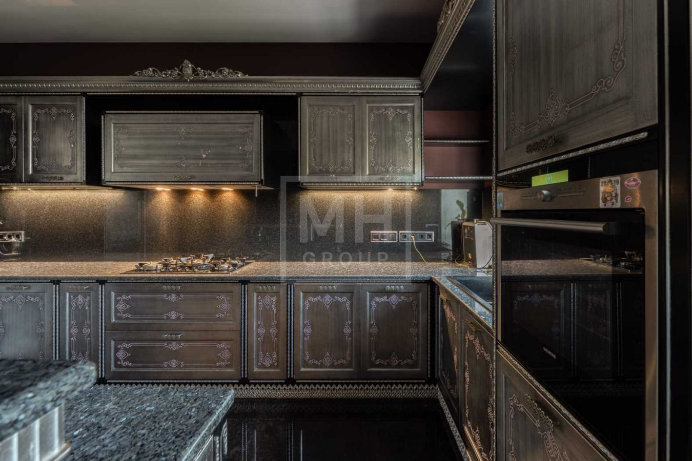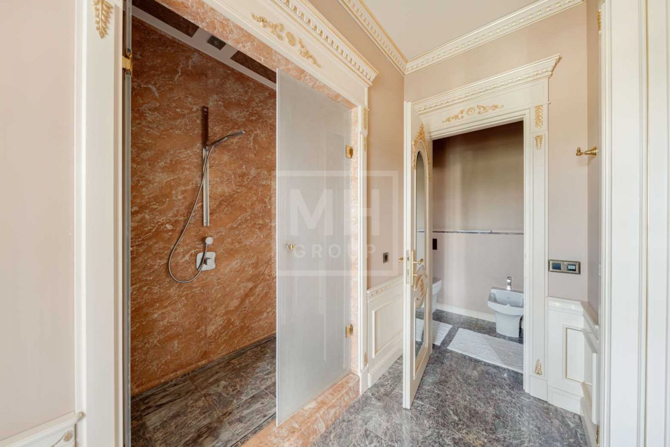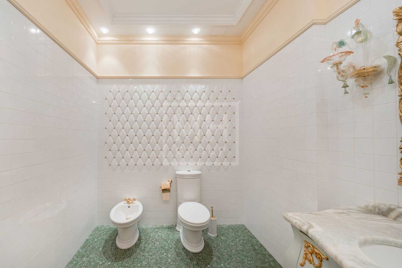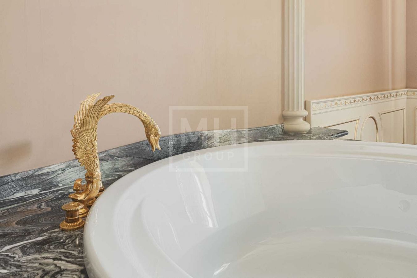 Дом с отделкой и мебелью в классическом стиле площадью 1 500 м2 на участке 53 сотки.В отделке много натуральных материалов: мрамор различных видов, натуральная мозаика, ковка, дерево. Фасад выполнен из облицовочного кирпича.
