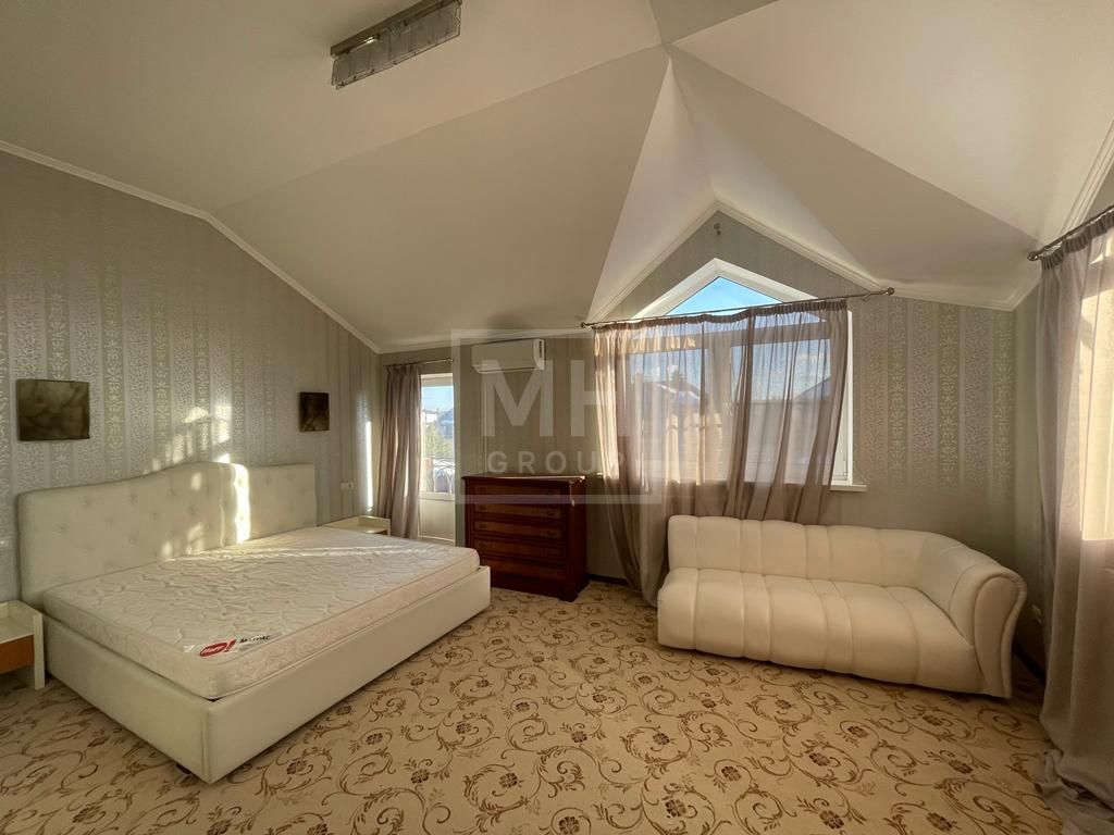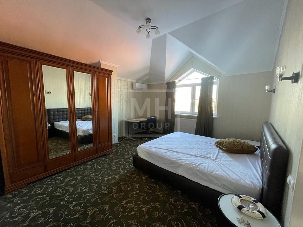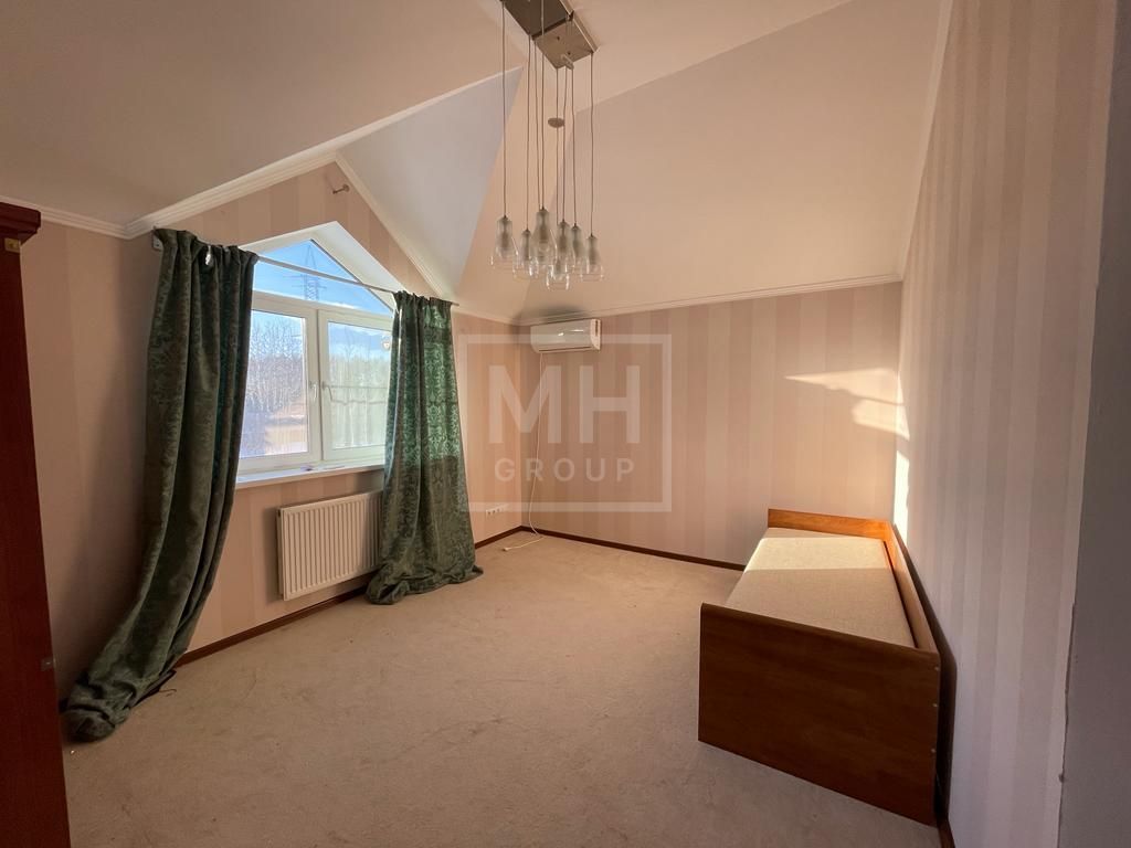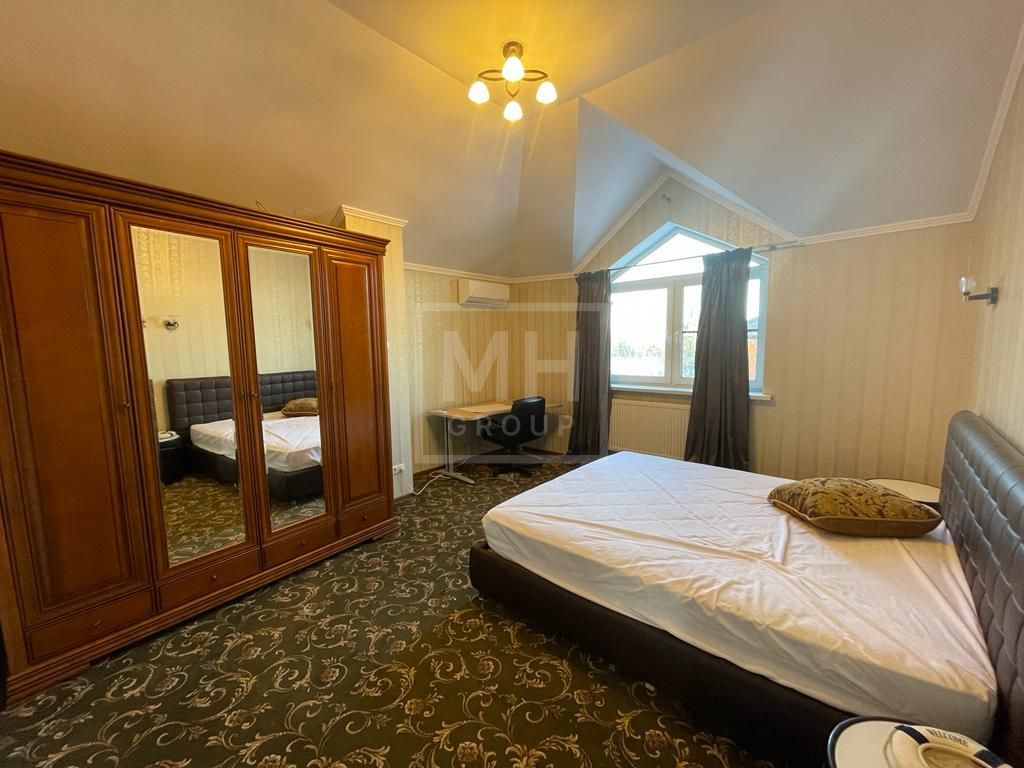 Небольшой, но вместительный и качественный дом в СНТ "Горки-2".Стены дома из кирпича с утеплителем. В доме органично размещены 5 спален, и еще одна для персонала, есть зона отдыха с сауной.