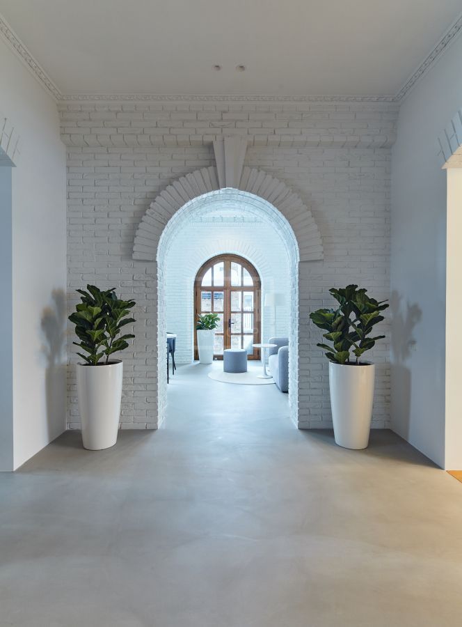 прогулочная зона с привезёнными из Италии деревьями, каменные, не стареющие элементы отделки и дизайна сада создают неподдельную монументальность объекта.