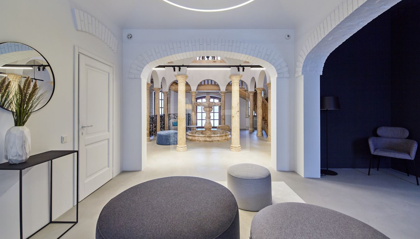 травертина, гранита, дерева, а также интегрированы современные материалы: стекло, ультрамодные световые технологии, системы хранения и лаконичный дизайн каждого жилого блока.