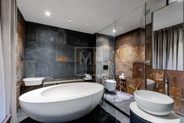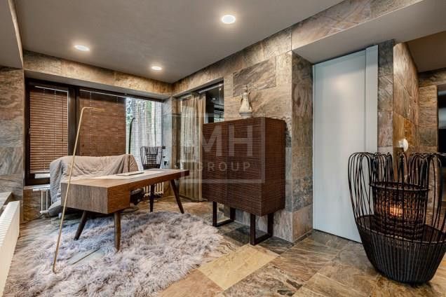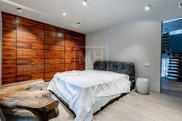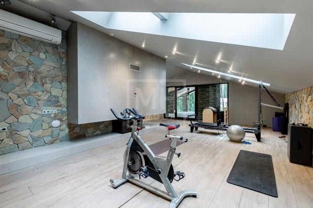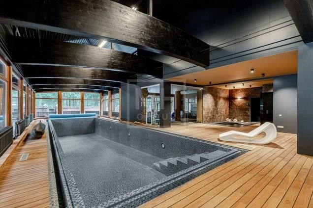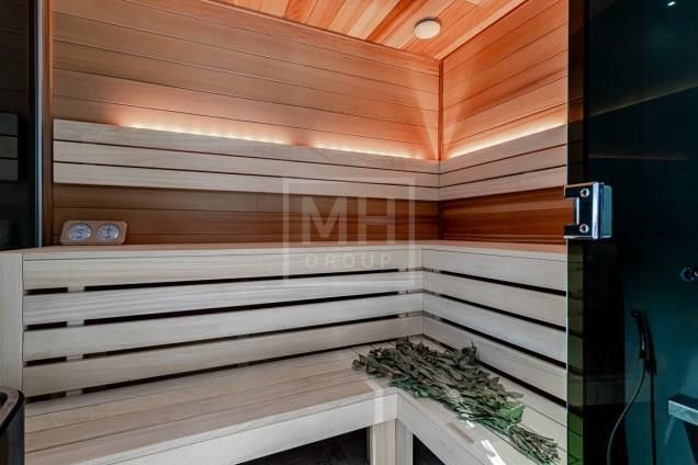 Этаж 1: Гостиная со вторым светом и камином, кухня, столовая, спальня с санузлом, рабочая кухня, библиотека. Спа-зона с хамамом, сауной, бассейном, джакузи, гостевой спальней, спортзалом. Блок для персонала с отдельным входом. Гараж на две машины.