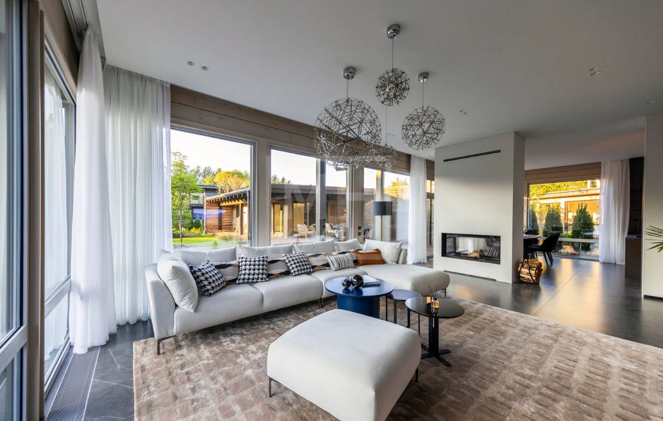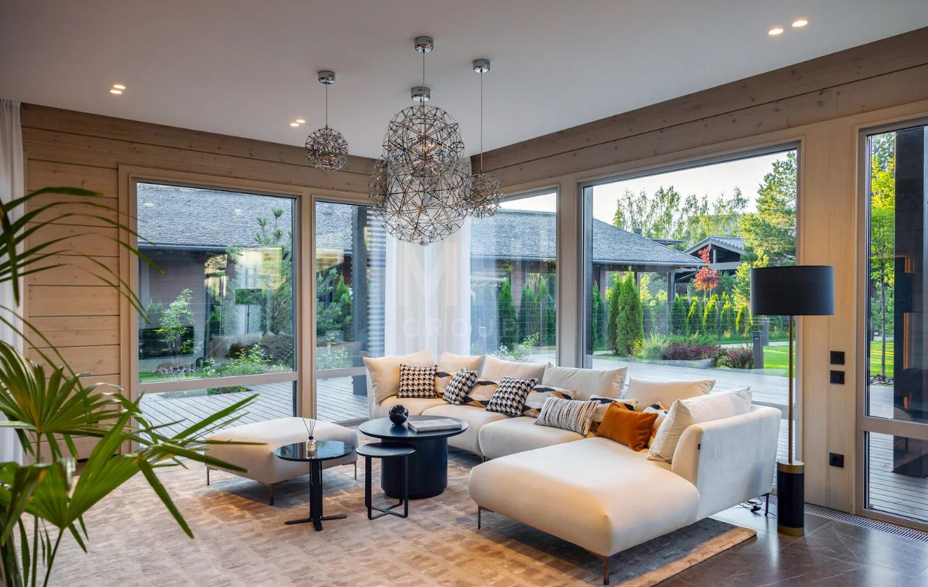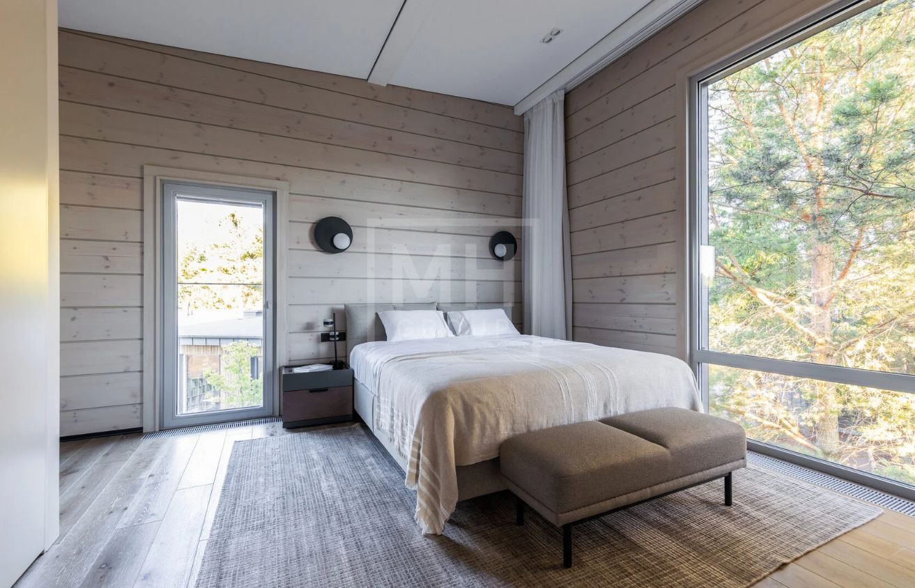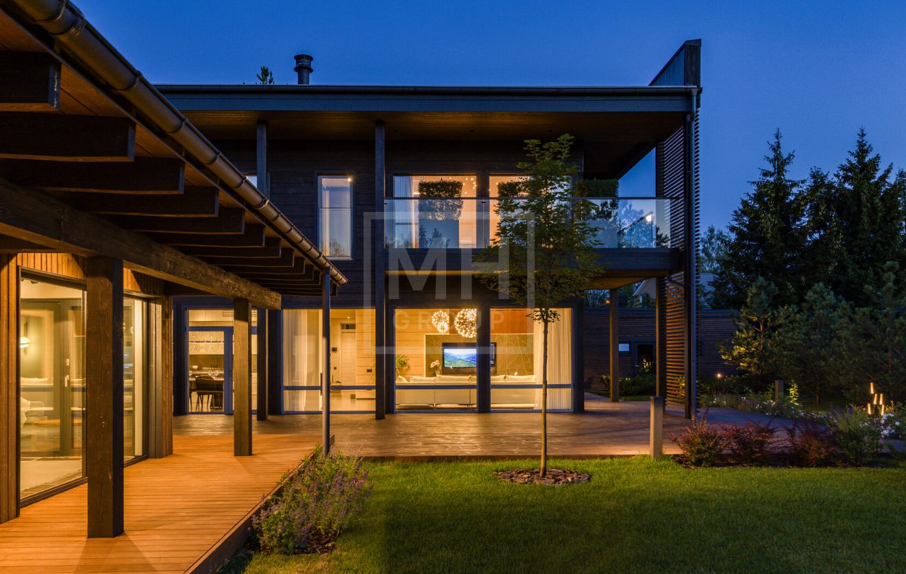 Дом премиум-класса в коттеджном поселке Gorki Lake спроектирован архитектором с мировым именем Matti Iiramo. Дом построен из элитной финской сосны по уникальной безусадочной технологии Nord Cross, единственной в России. Дом не требуют технического обслуживания, связанного с усадкой дома. Часть наружных стен выполнены из финских термо-модулей Concrette, имеющих утепленную трехслойную бетонную структуру (технология разработана в Финляндии, имеет лучшие экологические и технические показатели, сегодня признана лучшей на рынке каменных домов). Панорамные двухкамерные алюминиевые энергоэффективные окна с климат контролем фирмы Alutech и мансардные окна Velux дополняют архитектурный облик дома . Деревянные финские двери Kaski с системой климат-контроля. Итальянский стиль интерьера: дизайн и комплектация разработаны итальянским архитектором Fabiano Vidussi.Проектом предусмотрена квартира для персонала. Гараж на два машиноместа.