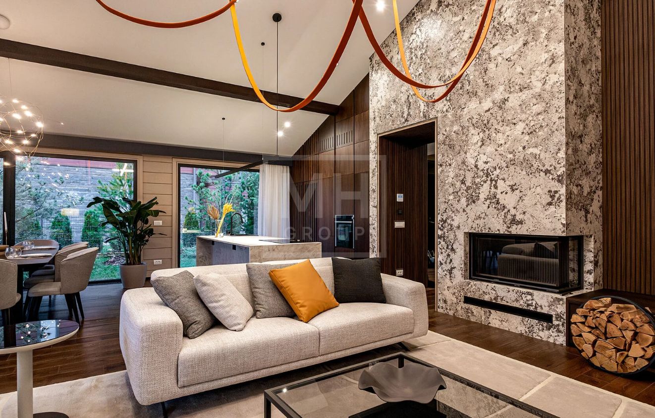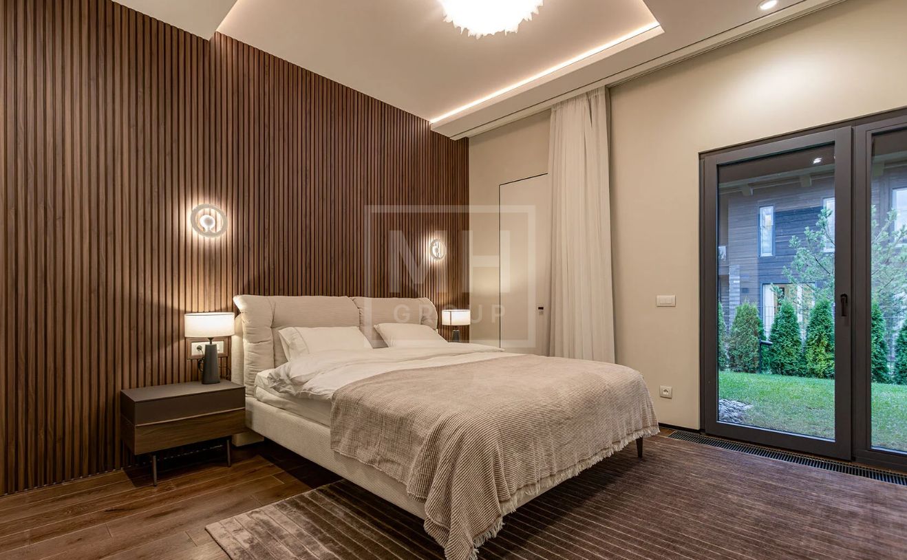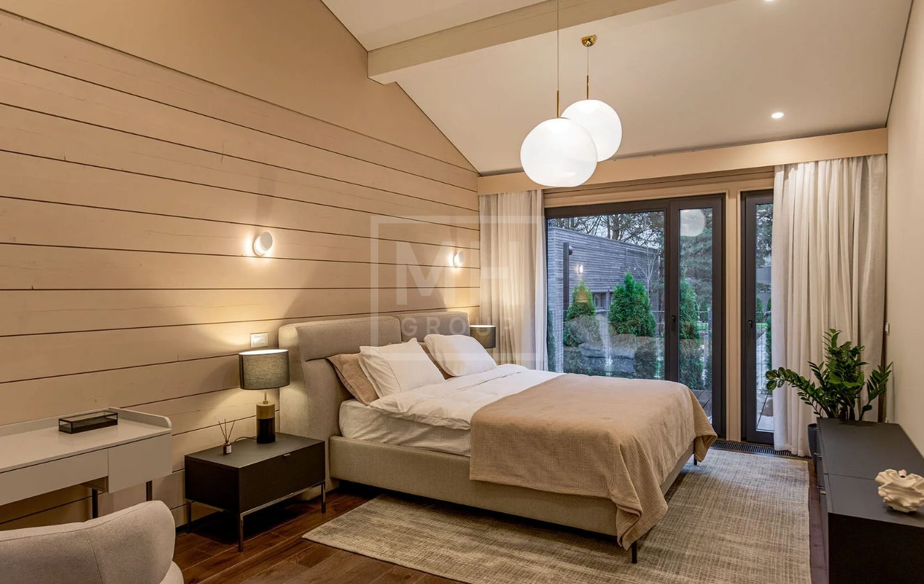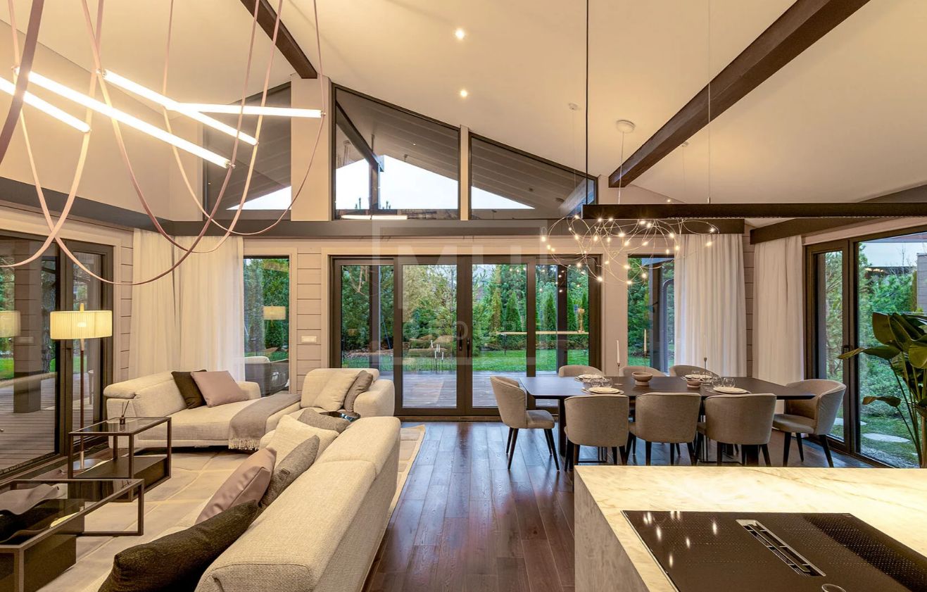 Дом в стиле шале от известного архитектора Matti Iiramo в поселке Gorki Lake на Рублево-Успенском шоссе. Дом построен из элитной финской ели по уникальной безусадочной технологии Nord Cross, единственной в России. Дом не требуют технического обслуживания, связанного с усадкой дома. Наружные стены брусовые. Крыша: двускатная, покрыта цементно-песчаной черепицей Braas. Панорамные двухкамерные алюминиевые энергоэффективные окна с климат контролем фирмы Alutech. Финские деревянные двери Kaski, которые обладают высокой энергоэффективностью и оборудованы системой климат-контроля, что обеспечивает отличную теплоизоляцию и комфорт. Итальянский стиль интерьера: дизайн и комплектация разработаны итальянским архитектором Fabiano Vidussi.На участке кроме основного дома просторный гараж на два машиноместа с зоной для хранения и котельной.. Предусмотрена зарядка для электрокаров.
