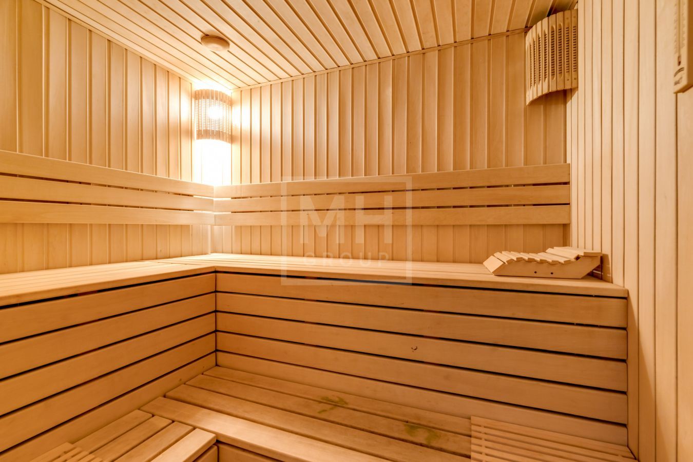 Этаж 1: прихожая, гардеробная, гостевой с/у, 2-я гардеробная, гостиная с выходом на террасу, кухня, столовая, кабинет с камином, сауна, душевая, комната отдыха с выходом на участок, 2 кладовые, котельная