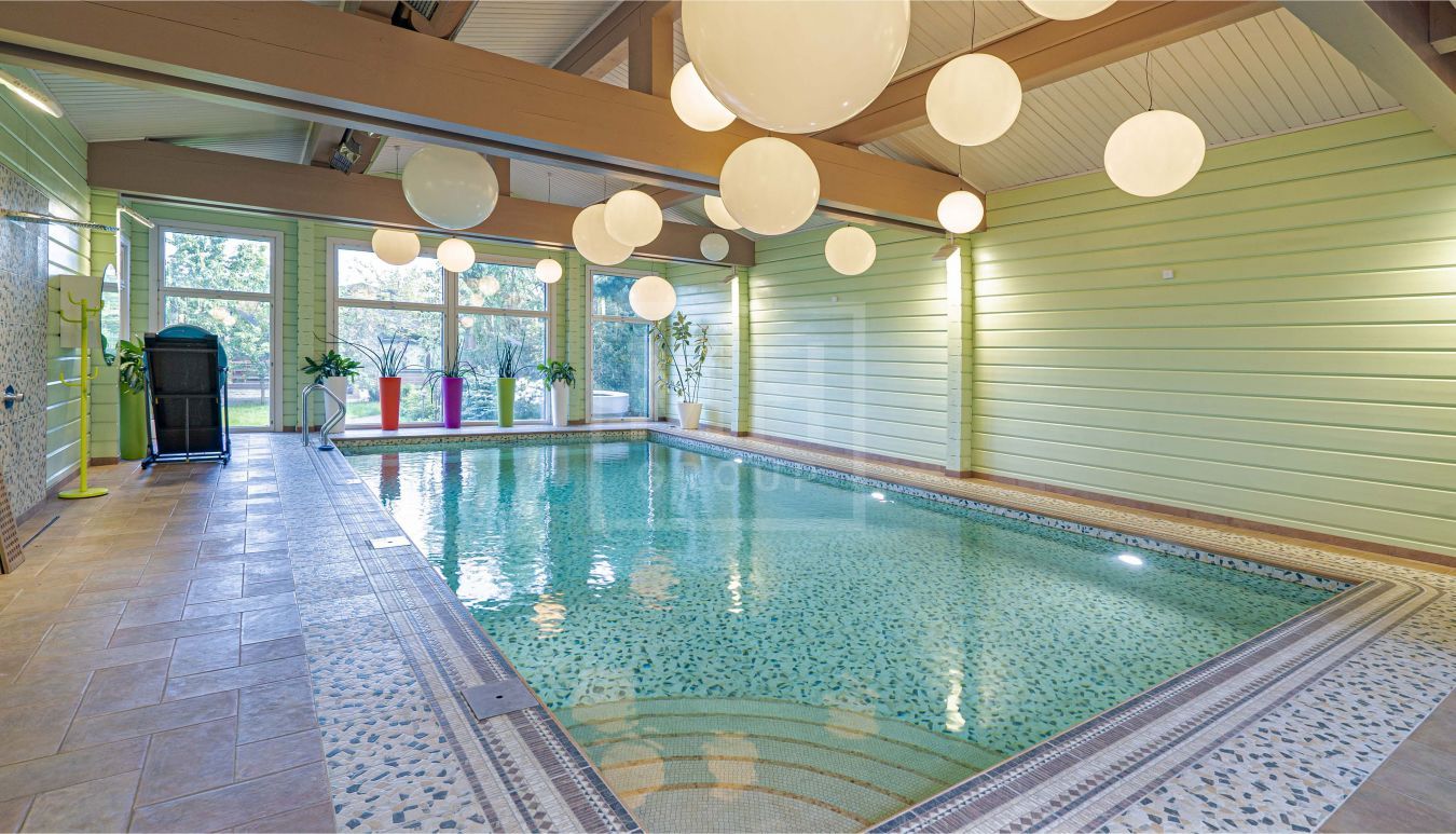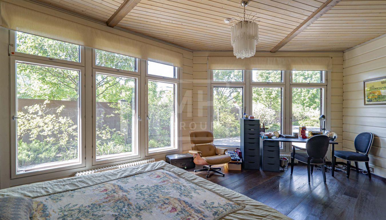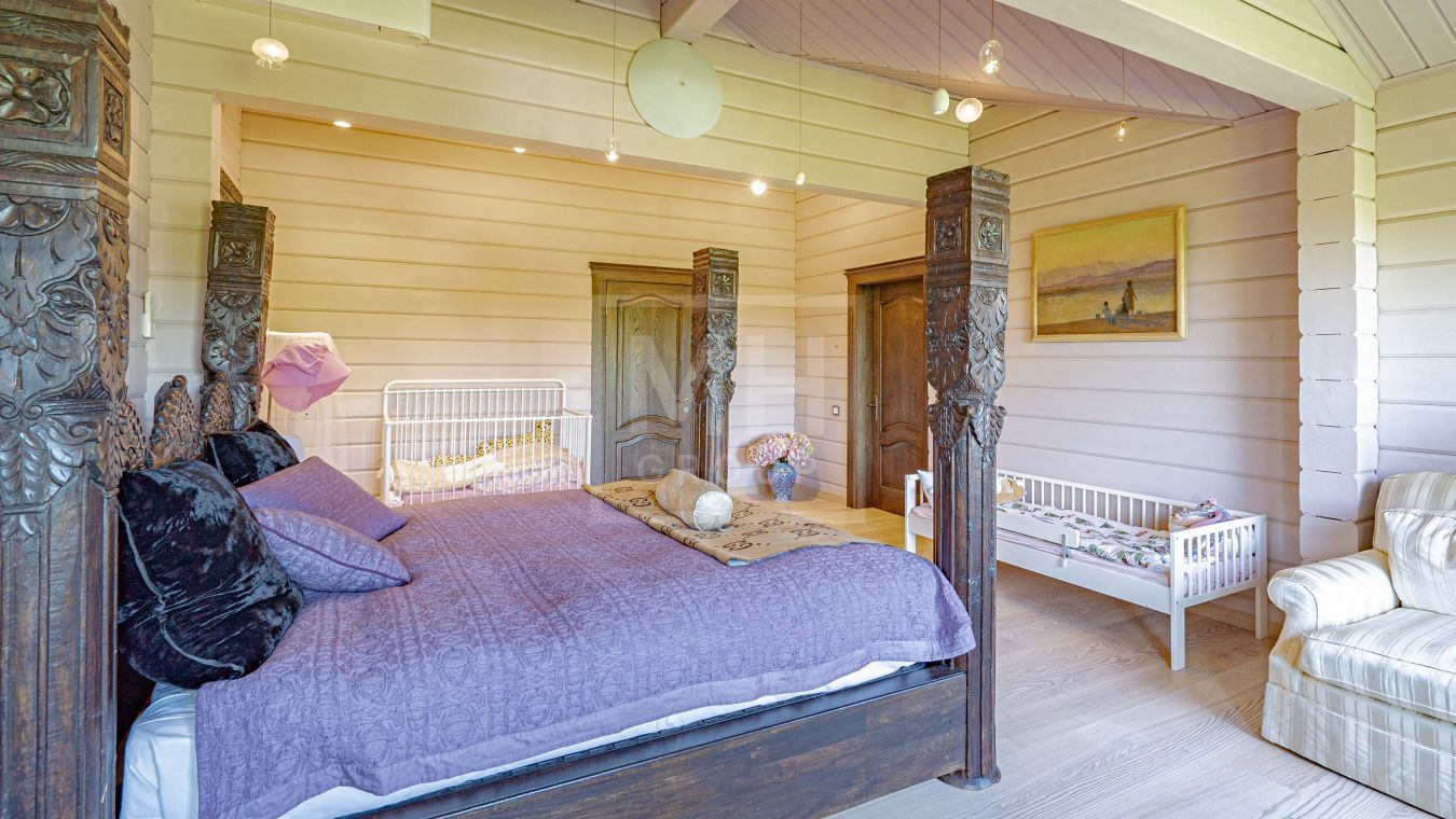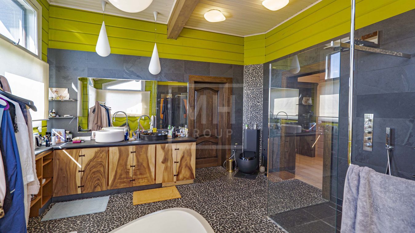 Деревянный дом 1455м, дом для персонала 135 м, гараж на 4 м/м, с баней и большим бассейном на просторном участке 44 сотки. Вся задняя часть дома окружена просторной террасой.Участок зеленый, плодовые и хвойные деревья.