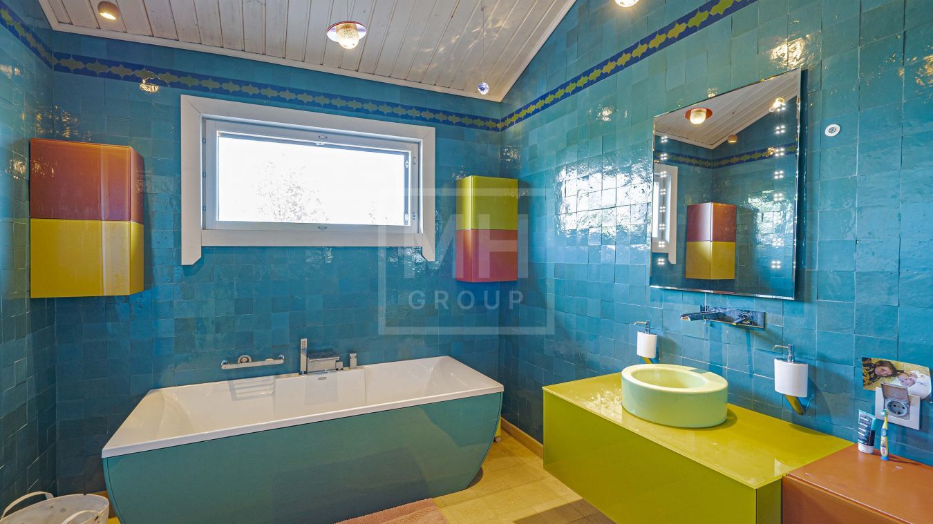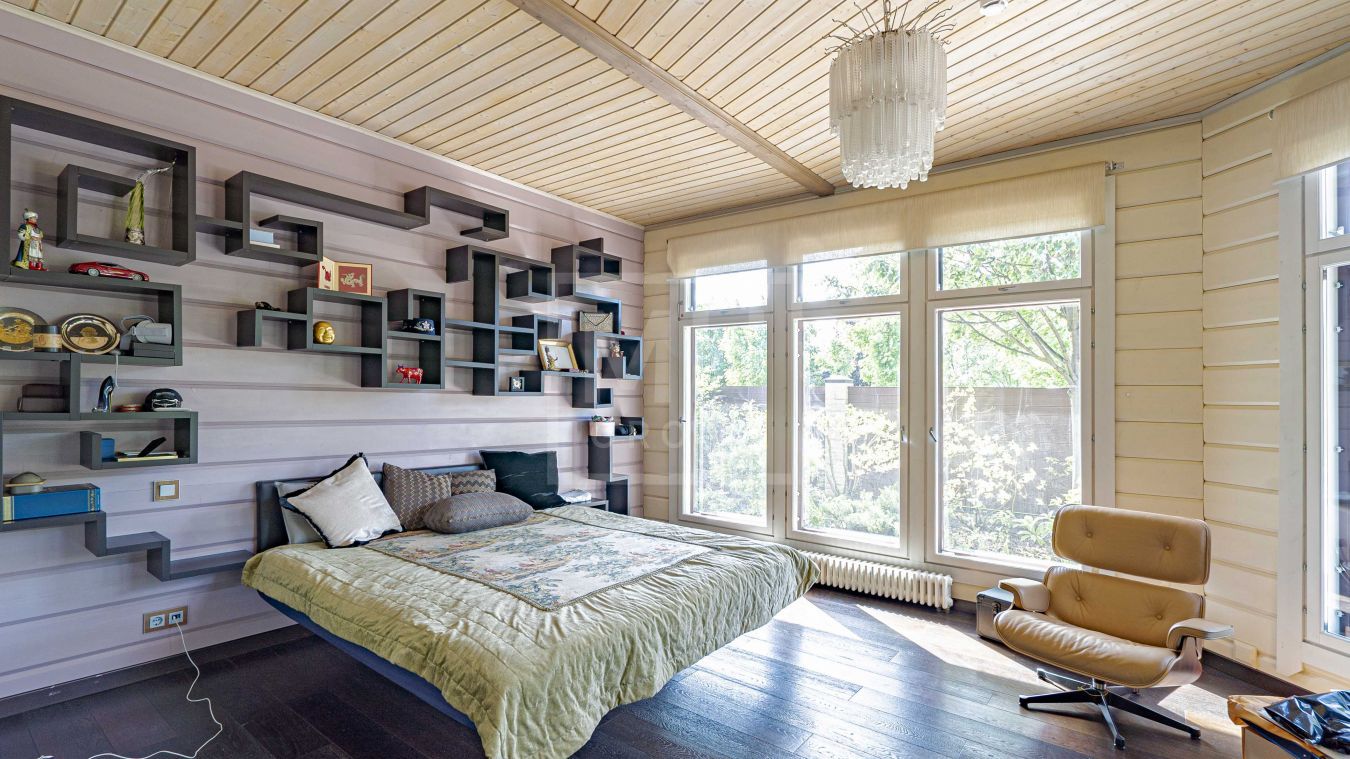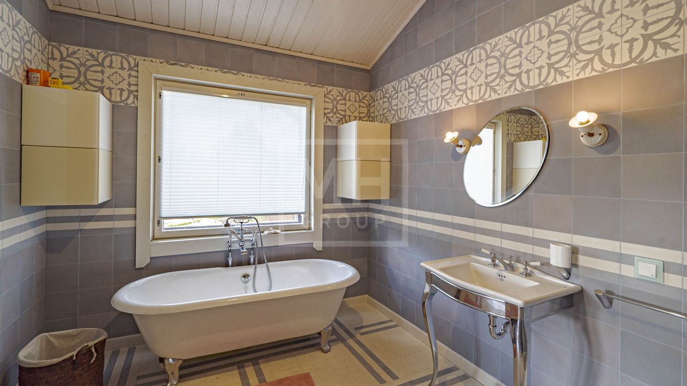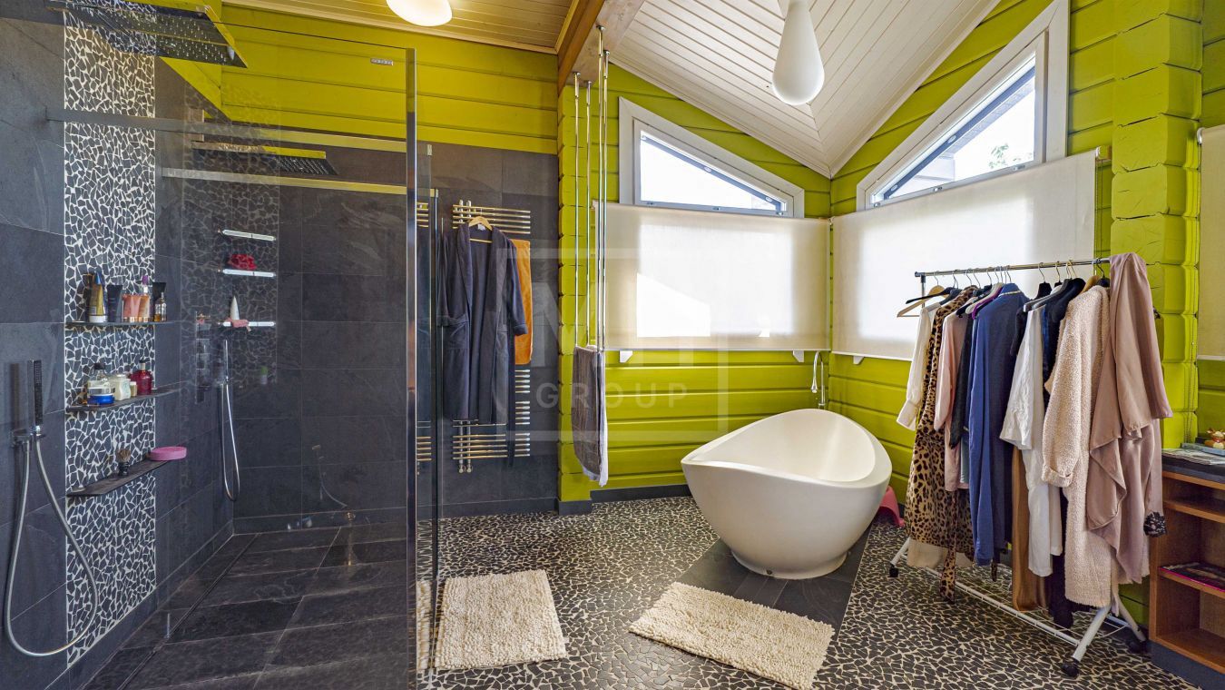 Деревянный дом 1455м, дом для персонала 135 м, гараж на 4 м/м, с баней и большим бассейном на просторном участке 44 сотки. Вся задняя часть дома окружена просторной террасой.Участок зеленый, плодовые и хвойные деревья.