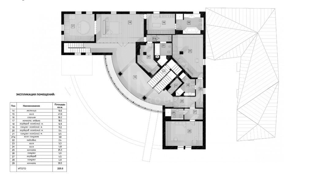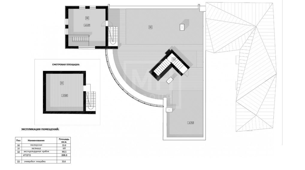 Этаж 3: кабинет с выходом на эксплуатируемую крышу 200 метров