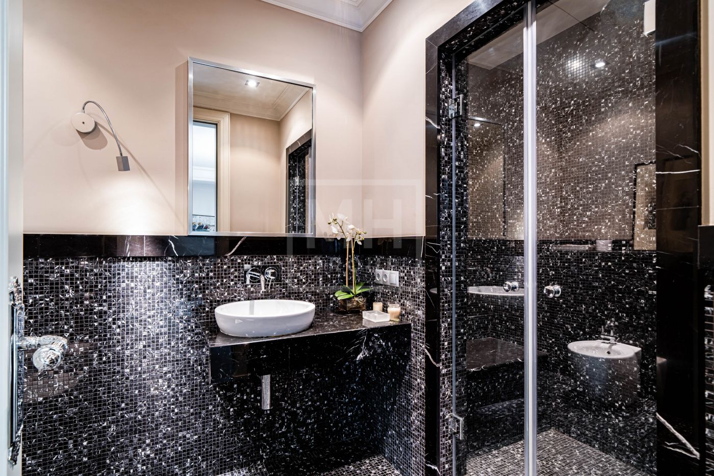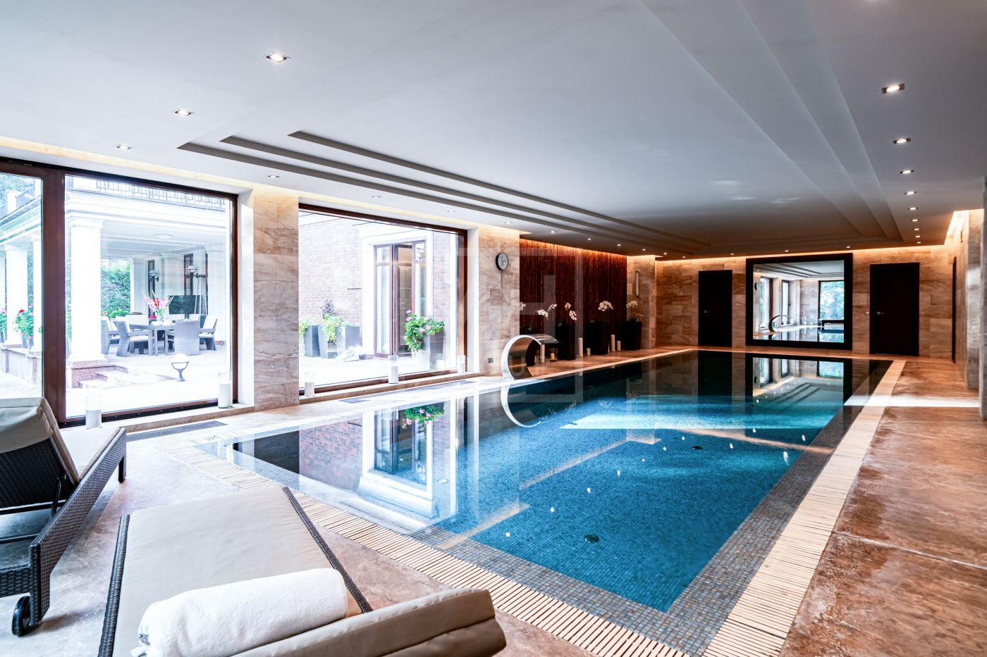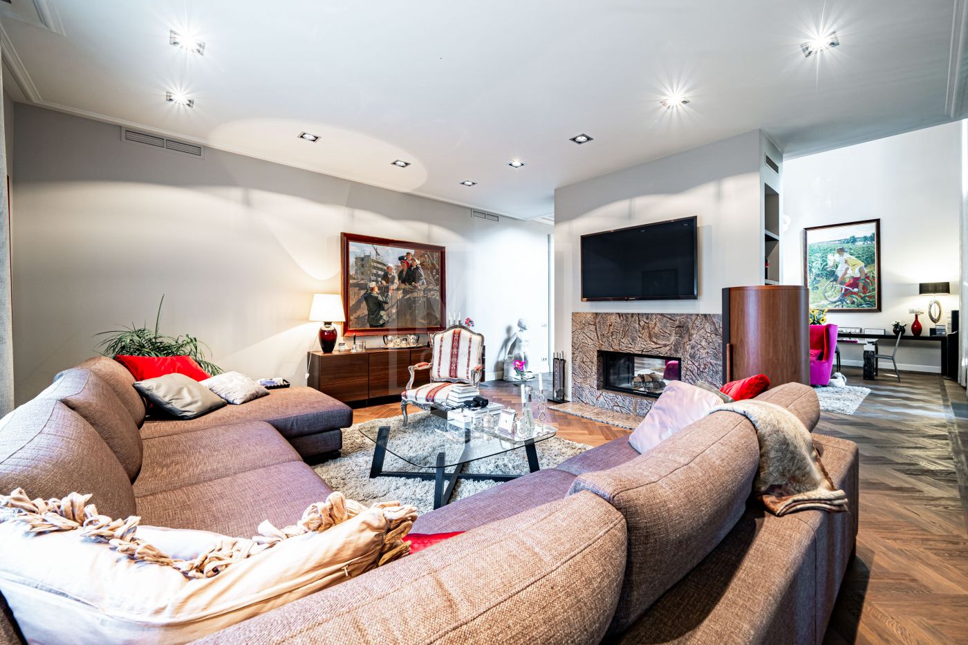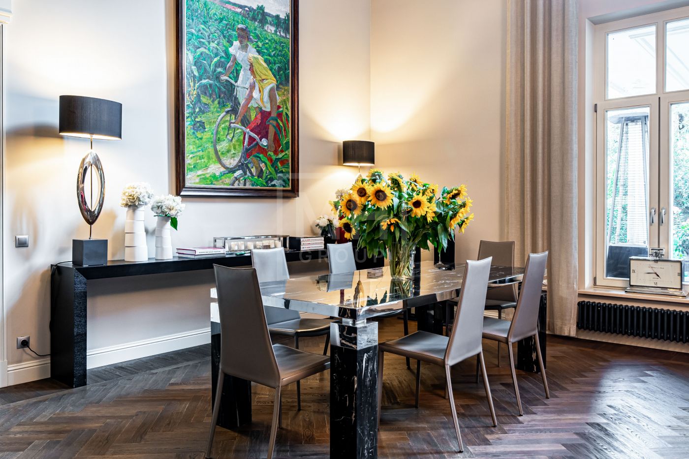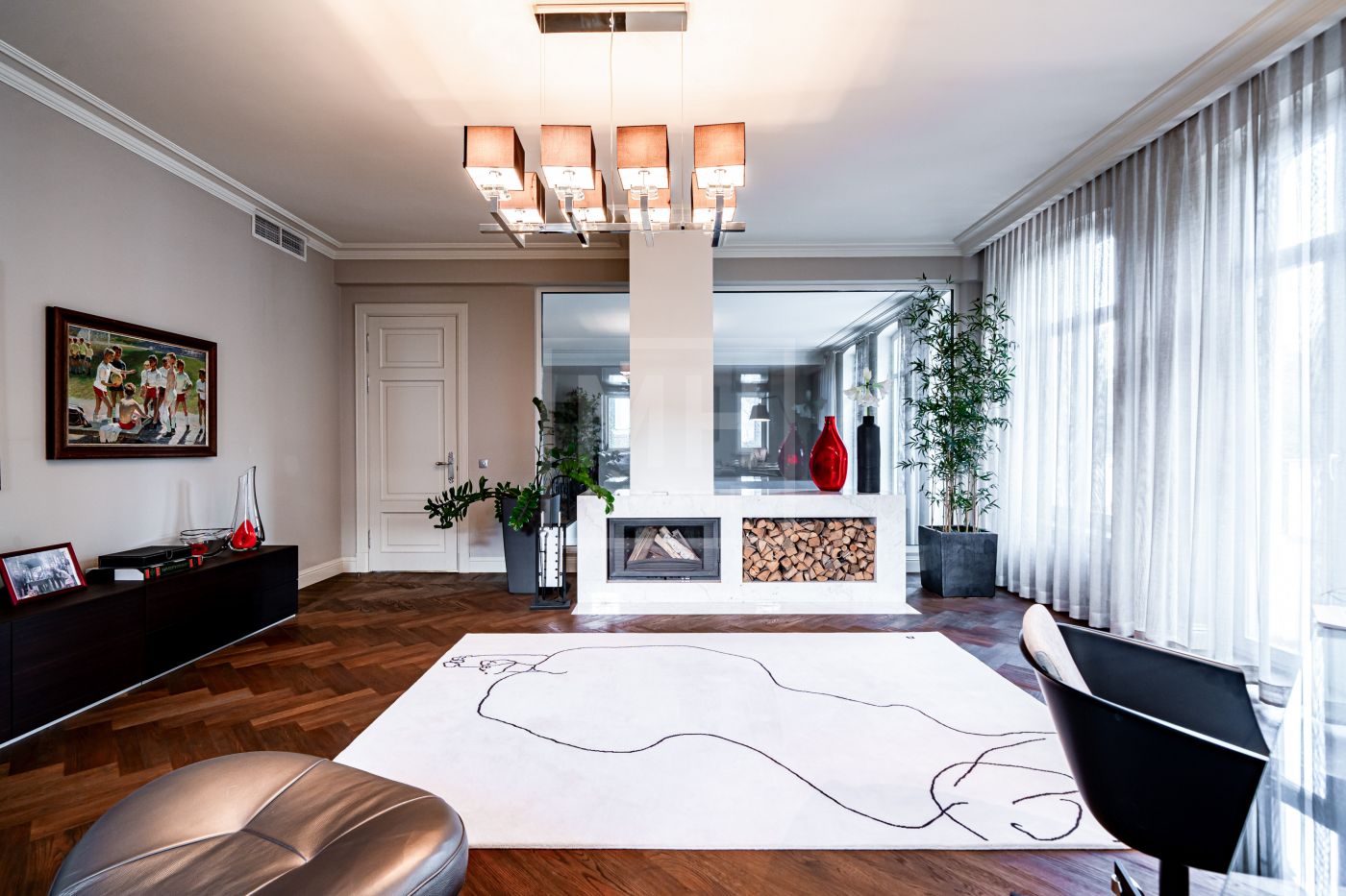 Этаж 1: Холл с гардеробной, с/у и выходом в гараж, кабинет с с/у (можно использовать как спальню) малая гостиная, столовая-гостиная со 2-м светом камином и выходом на террасу, каминная, кухня с выходом на террасу, с/у, черный вход с с/у и выходом в гараж. SPA-зона: бассейн 12*4 с выходом на террасу, массажный кабинет с с/у, сауна, хамам, купель, 2 душевые, зона отдыха, с/у, выход на участок
