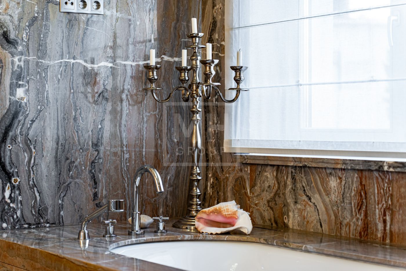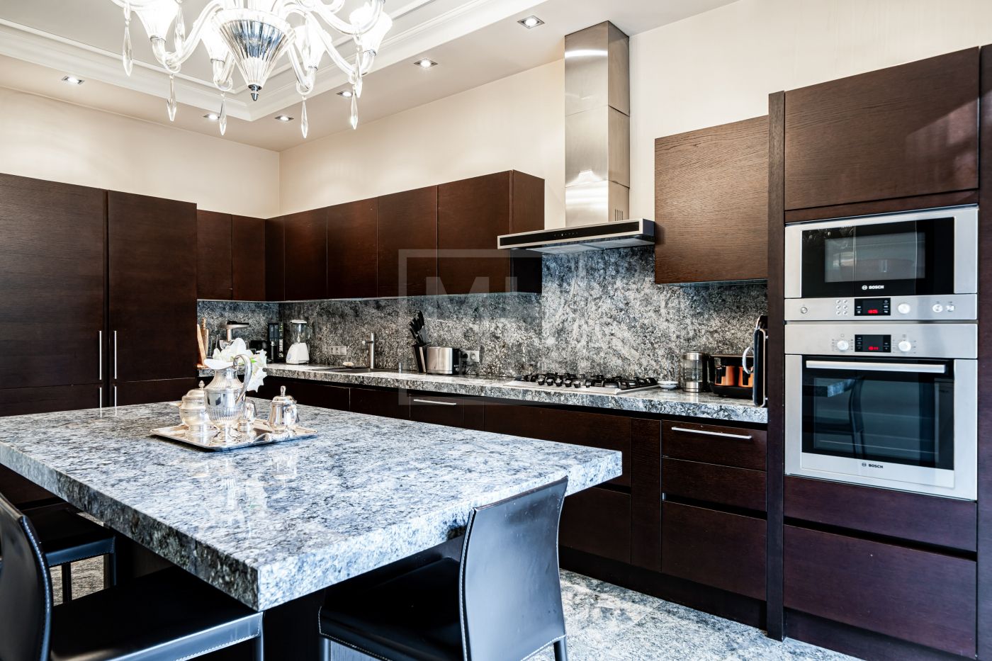 Цоколь: Хозяйская часть под финишную отделку: винная комната, кинотеатр с баром и с/у. Блок обслуживающего персонала: 2 комнаты, кухня, с/у с постирочной, водоподготовка, 3 кладовые, холодная кладовая, котельная.
