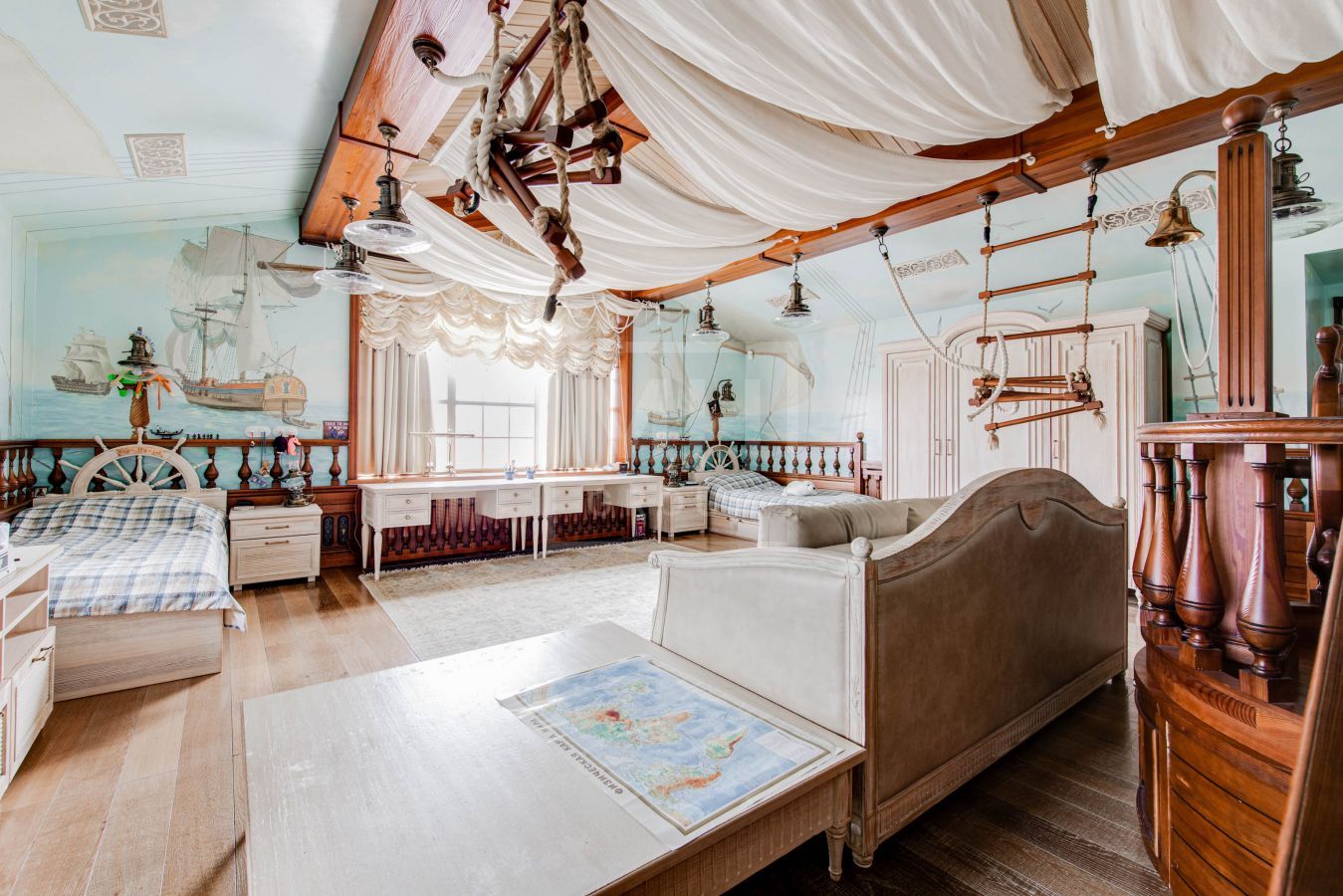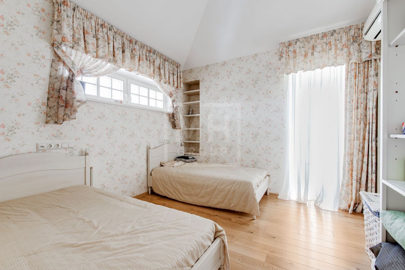 Предлагается уютный коттедж 500 кв. метров на участке 25 соток в элитном охраняемом КП “Миллениум Парк” на Новорижском шоссе.В основном доме два этажа, четыре спальни, три из которых со своими ванными комнатами, большой кабинет, просторная детская, оформленная в стиле корабля, зимний сад с разными видами кустов и деревьев, винная комната. Особняк подключен к системе "Умный дом".