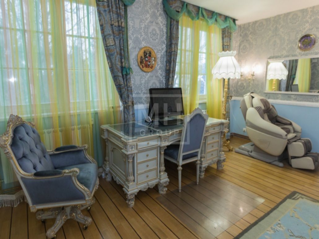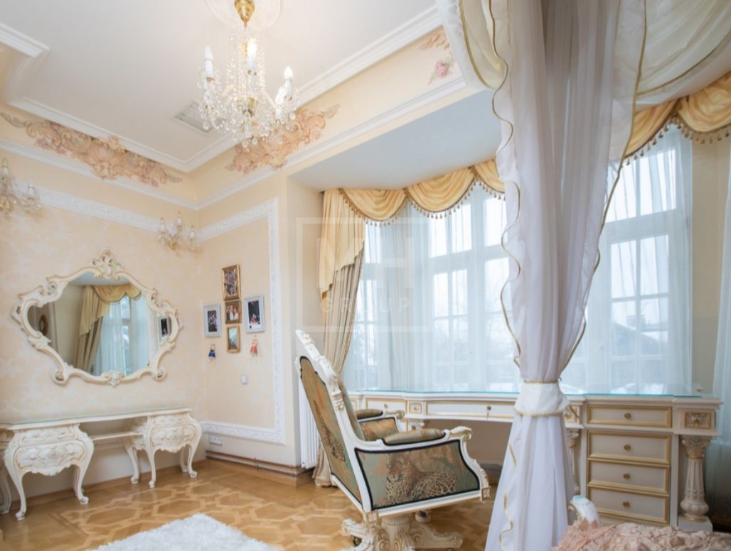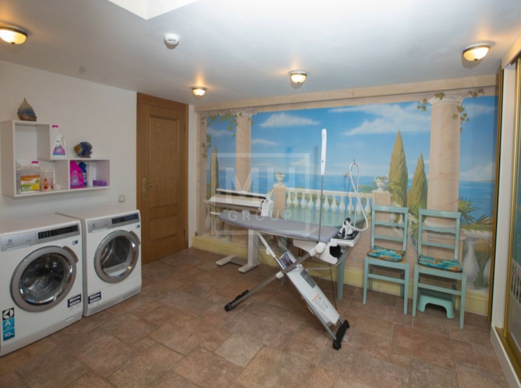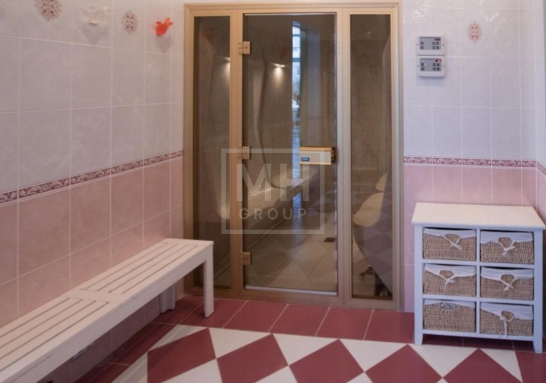 6 спален с санузлами и гардеробными комнатами, кабинет,кинозал, гостиная с камином,зимний сад с бассейном и джакузи, кухня, столовая, турецкая баня, винный погреб, холодильник для шуб,