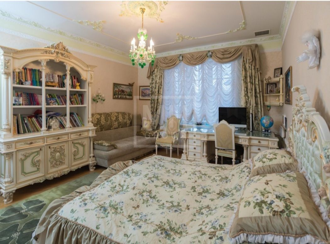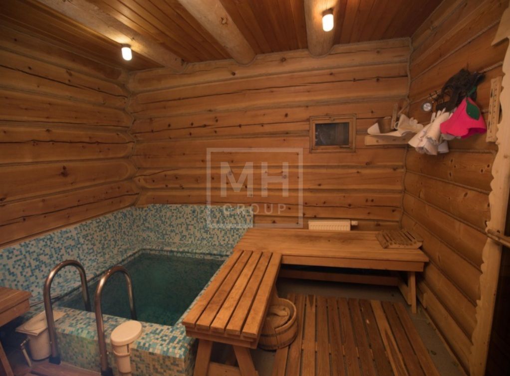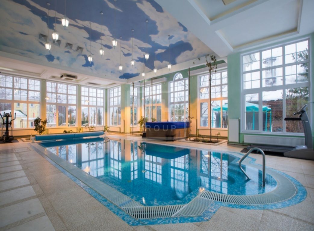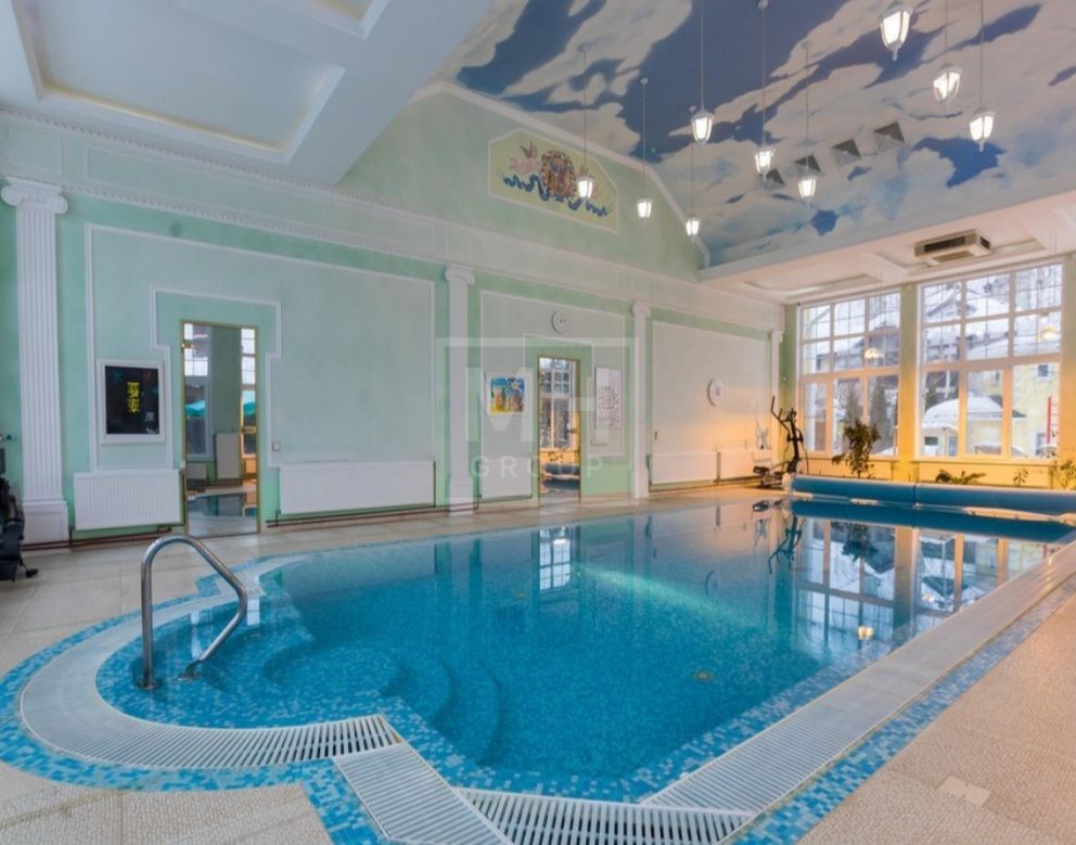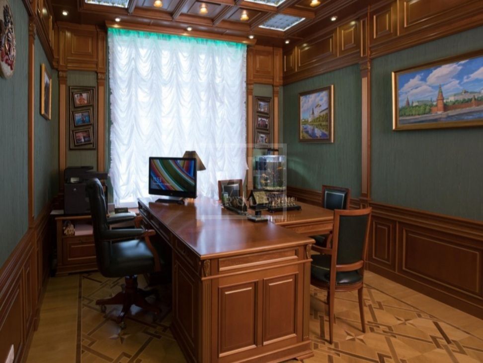 6 спален с санузлами и гардеробными комнатами, кабинет,кинозал, гостиная с камином,зимний сад с бассейном и джакузи, кухня, столовая, турецкая баня, винный погреб, холодильник для шуб,