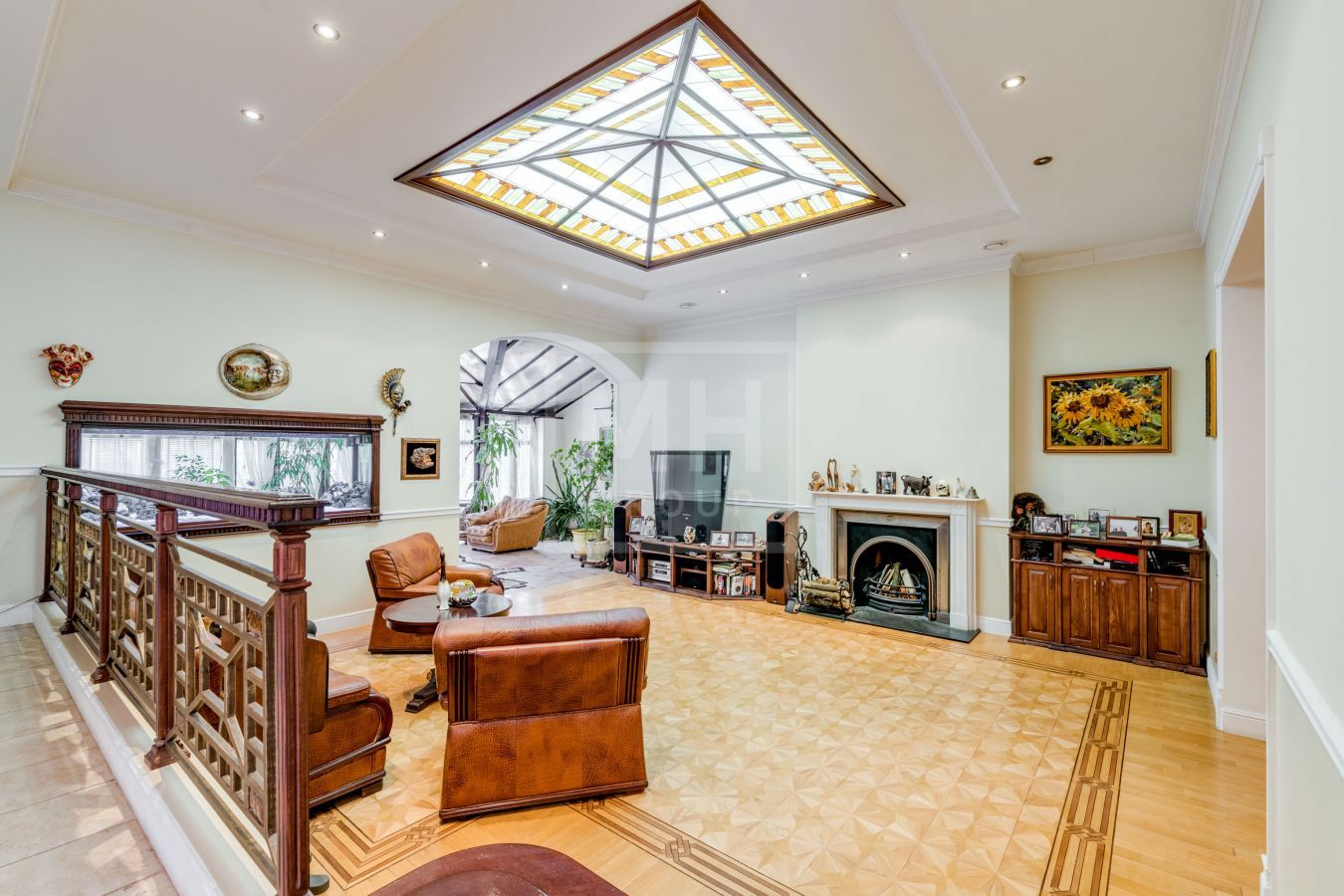 Этаж 1: прихожая, гостевой с/у, зимний сад, гостиная с камином и большим морским аквариумом, кухня-столовая, кабинет, три спальни, два санузла