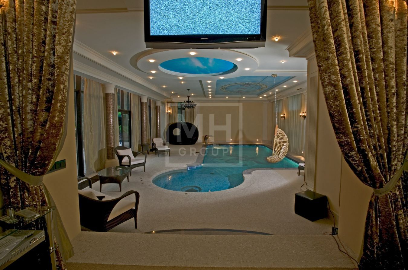 Этаж 1: прихожая, гардеробная, с/у, гостиная, кухня, столовая, кабинет, гостевая спальня, сауна, бассейн, спорт зал