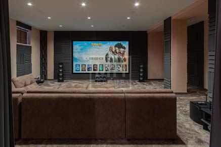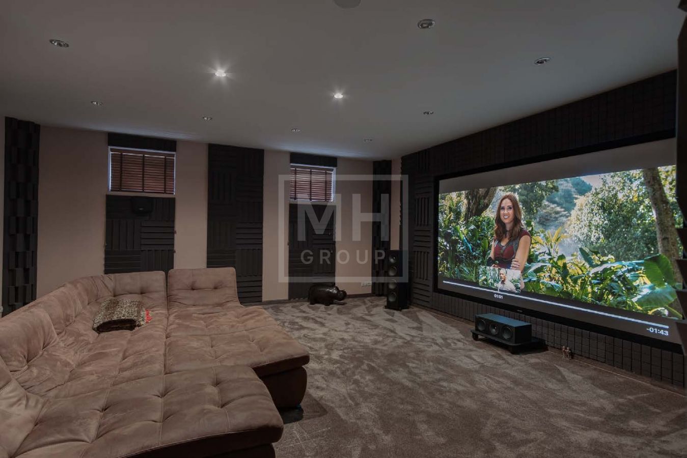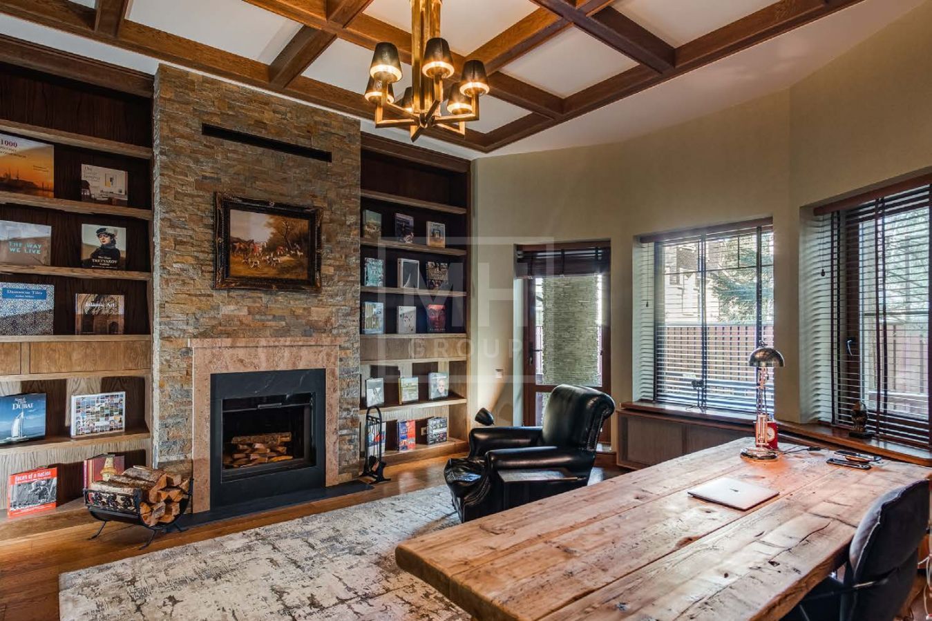 Помимо просторной гостинной с авторским камином и кухни-столовой есть профессиональный кинотеатр, спортзал, кабинет с камином, 3 спальни с ванными комнатами, гардеробными и большими балконами, огромное крытое патио с камином, постирочная, различные кладовые.