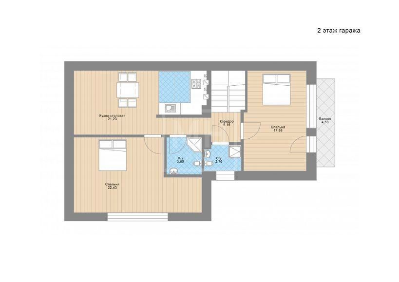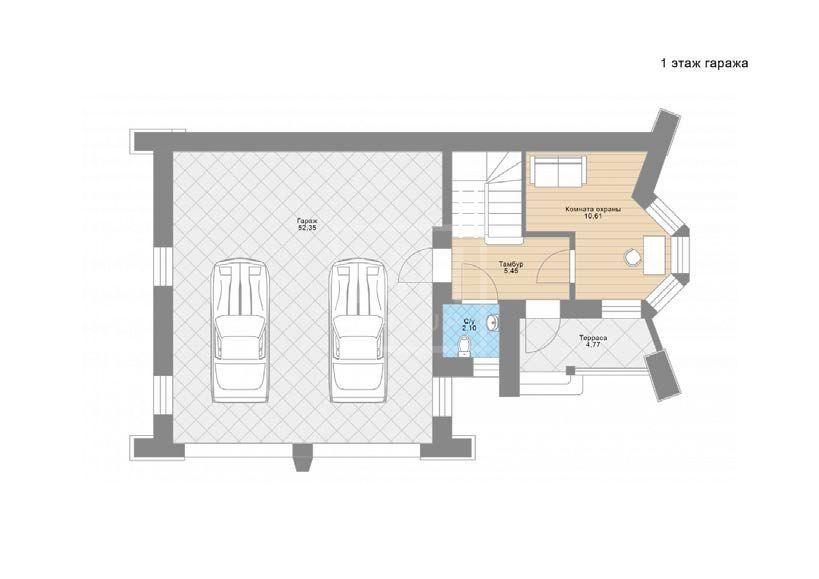 Отдельно стоящий гараж на 2 автомобиля с комфортабельной квартирой для обслуживающего персонала на 2 этаже.