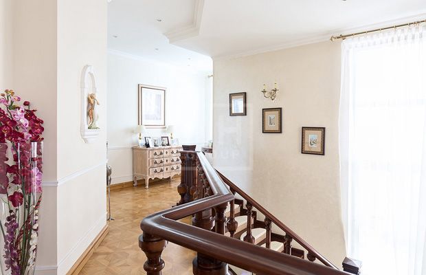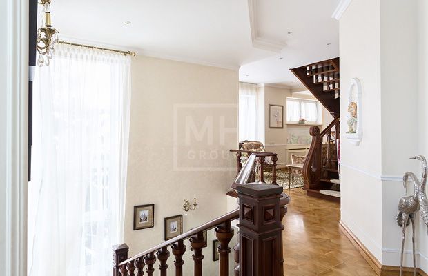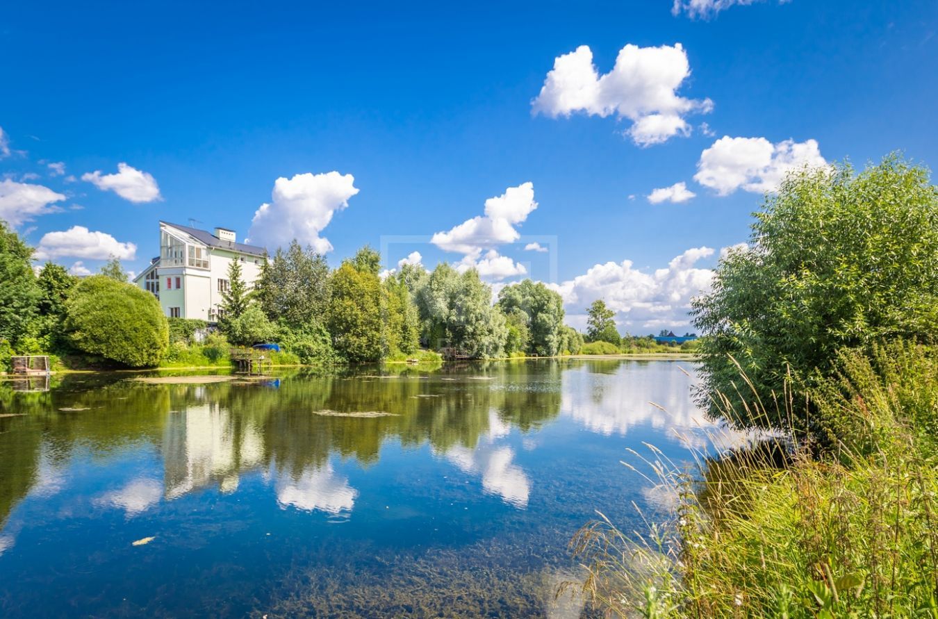 Дом в стиле американского архитектора Ф.Л. Райта в стародачном поселке на берегу живописного озера. Площадь дома - 600 кв.м., участка - 20 соток. Удобная транспортная доступность в Москву, выезд по трем шоссе или по платной дороге "Северный объезд Одинцово". В пешей доступности школа, гимназия, детский садик, магазины. В отделке дома использованы лучшие материалы - деревянные стеклопакеты, паркет из массива дерева, стены расписаны сотрудниками академии им. С.Г. Строганова, в котельной установлено оборудование Висманн. На участке капитальный гараж на две машины с квартирой для персонала на втором этаже. Многие соседи проживают постоянно. Есть возможность подъезда на общественном транспорте (электричка, автобус). Прописка г. Москва.