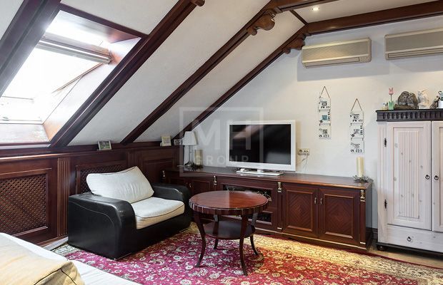 Мансарда: Большая студия, спальня, санузел.