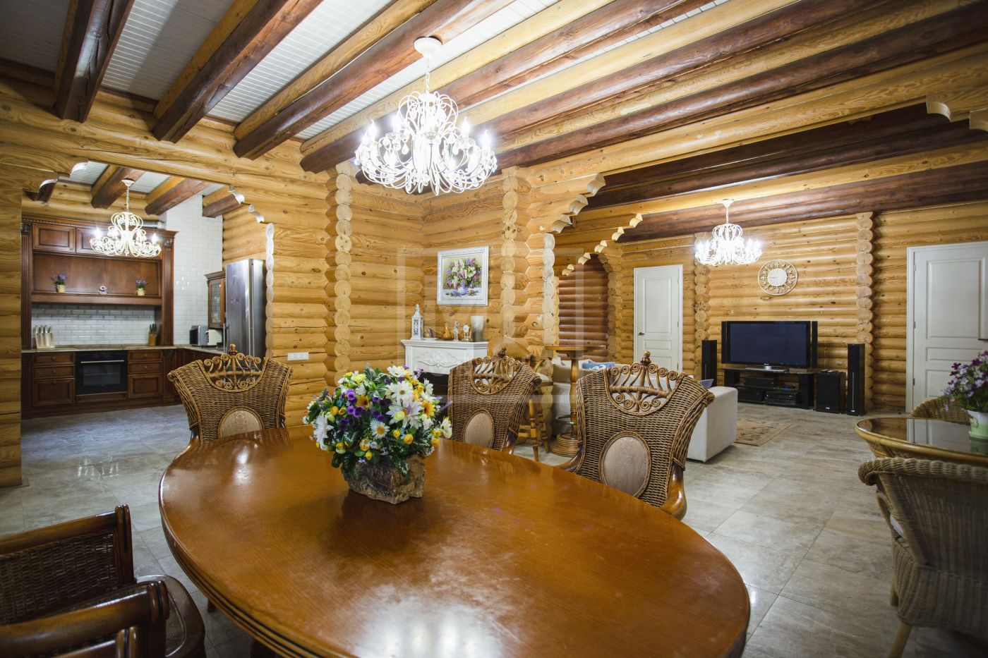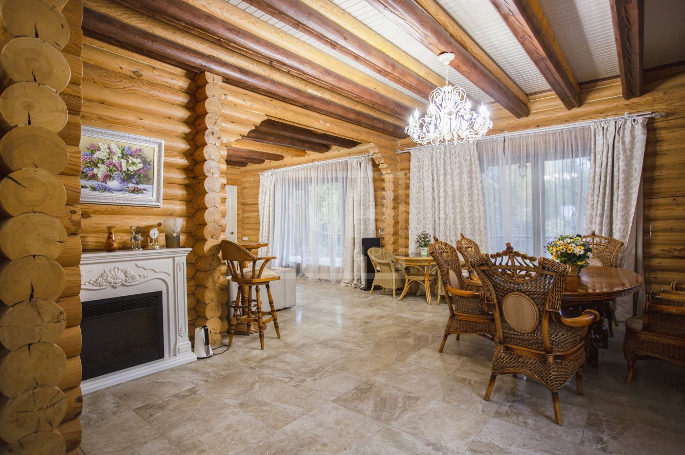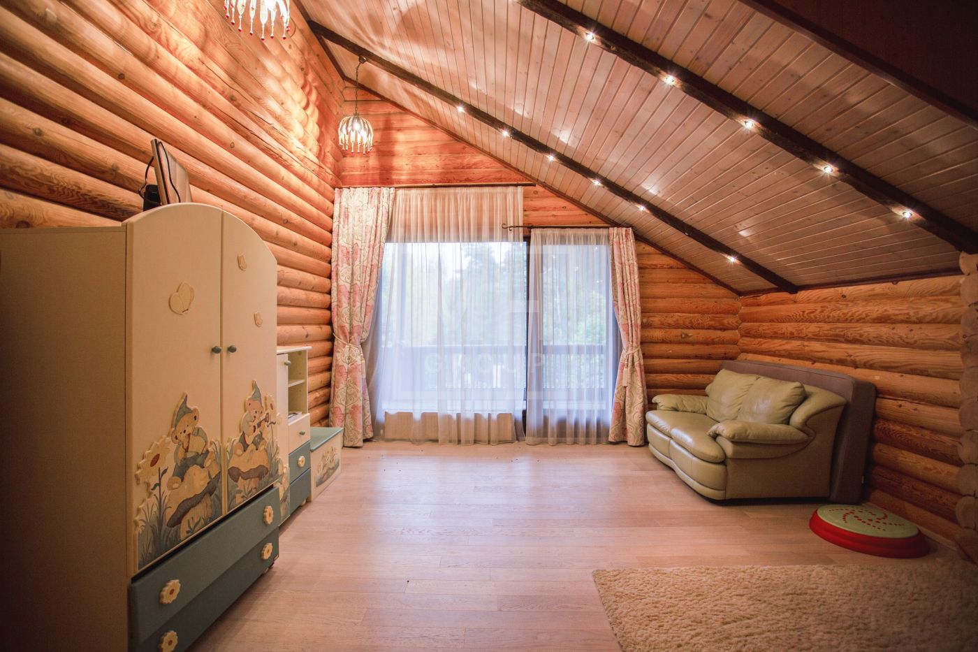 Бревенчатый уютный дом под ключ с мебелью.Мансарда: помещение свободной планировки
