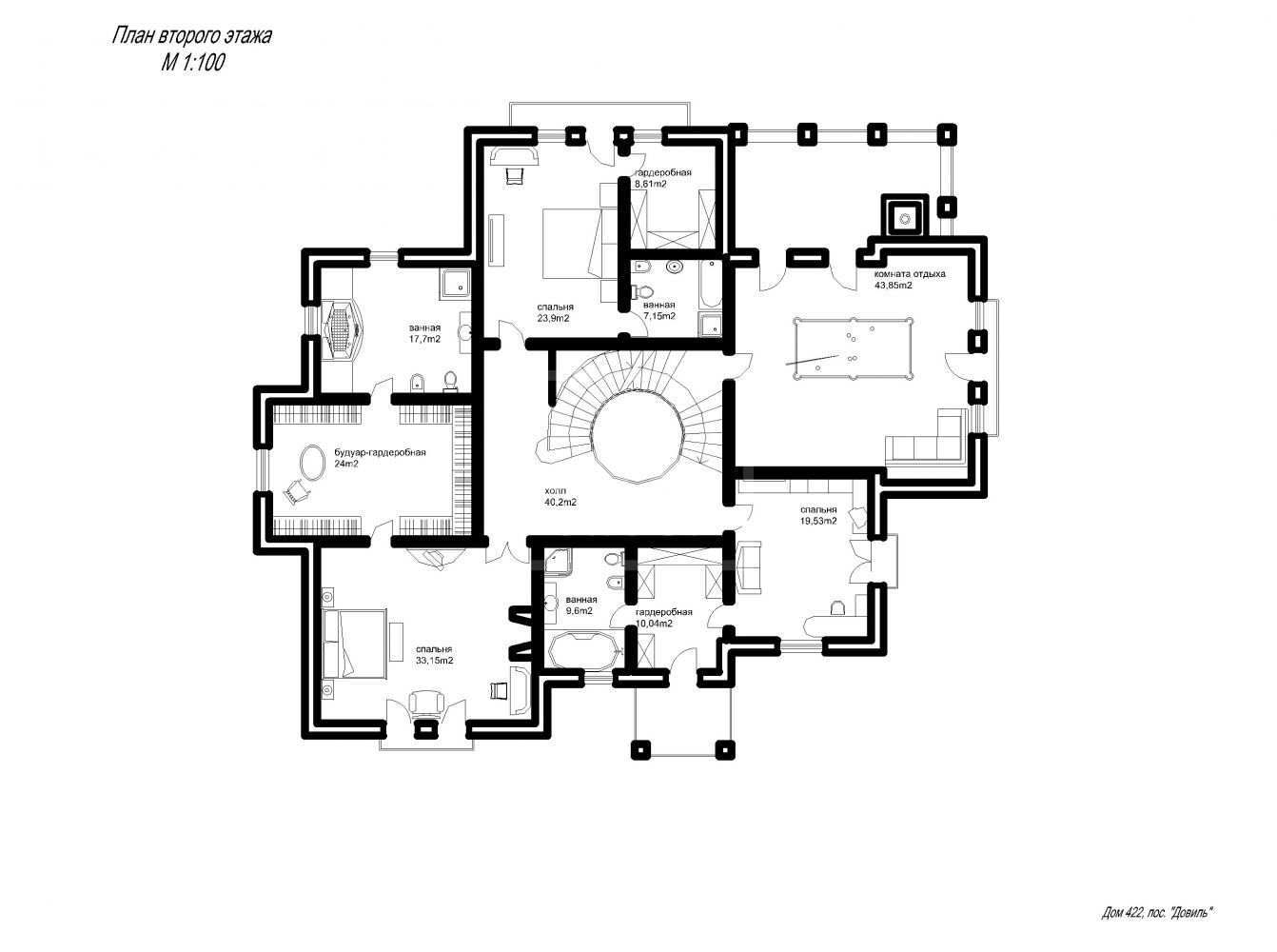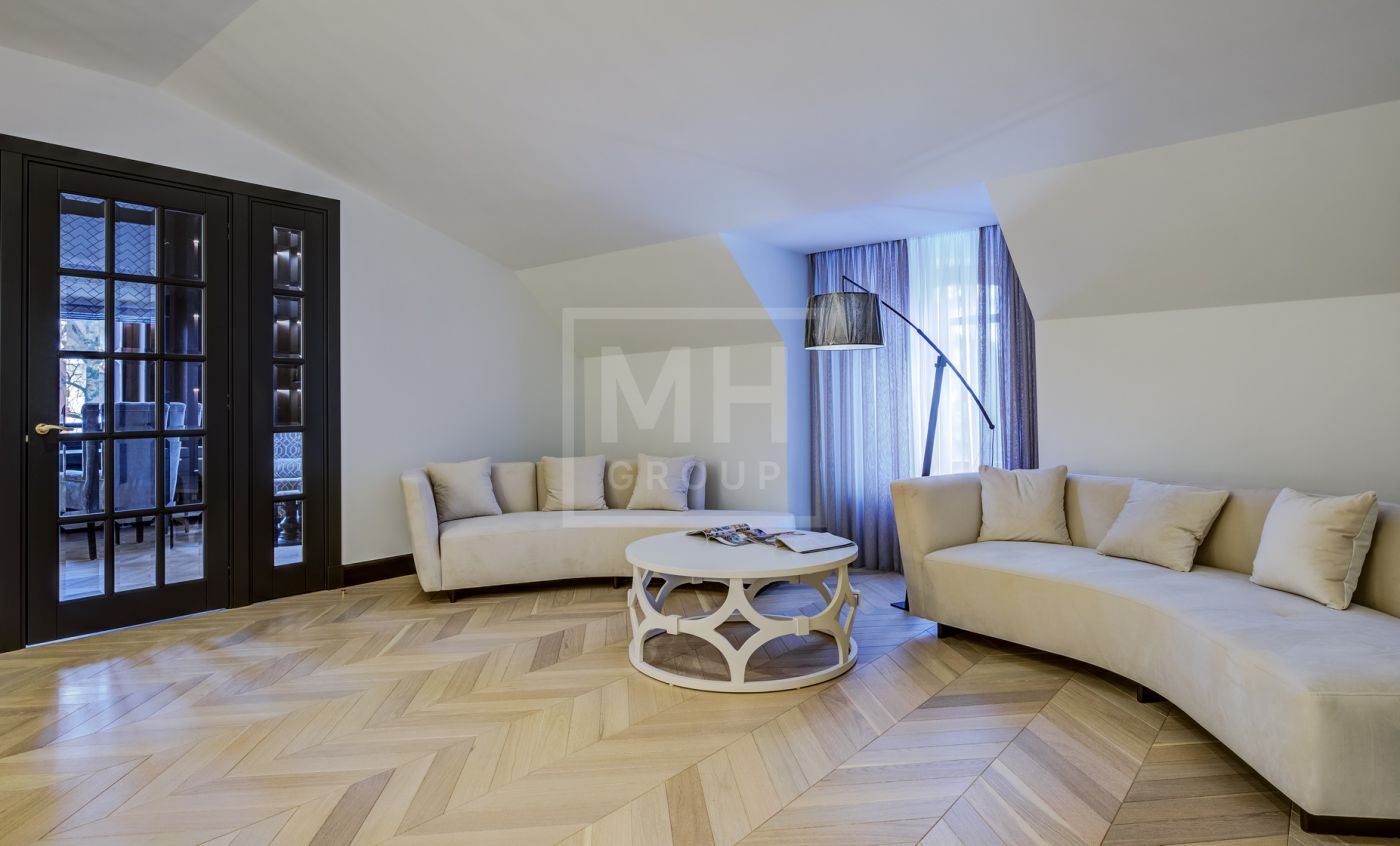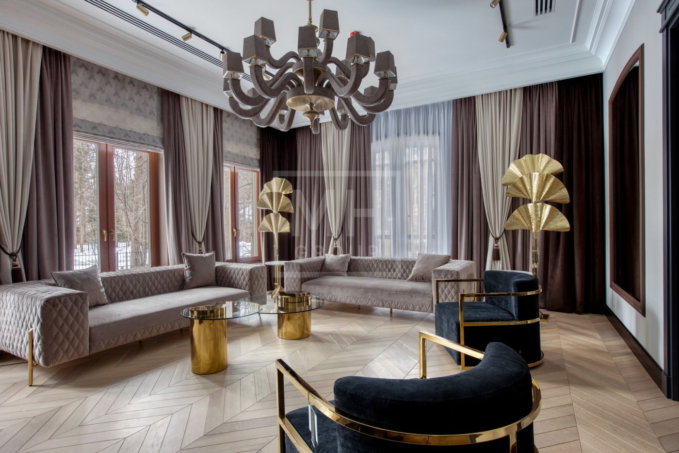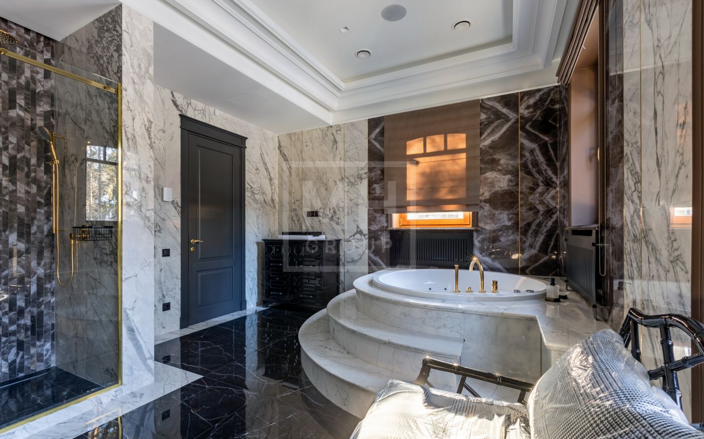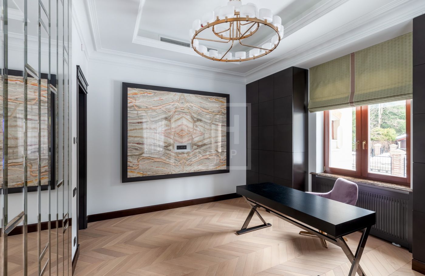 Этаж 1: Холл, кухня, столовая, каминный зал, второй свет, бильярд, кабинет, SPA-студию, котельная в доме. Гараж на два автомобиля.