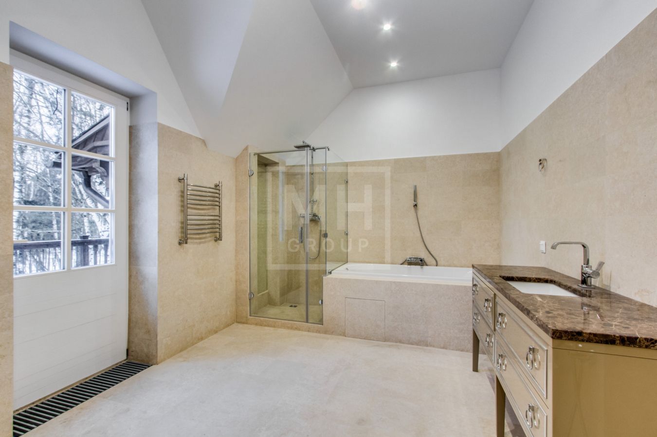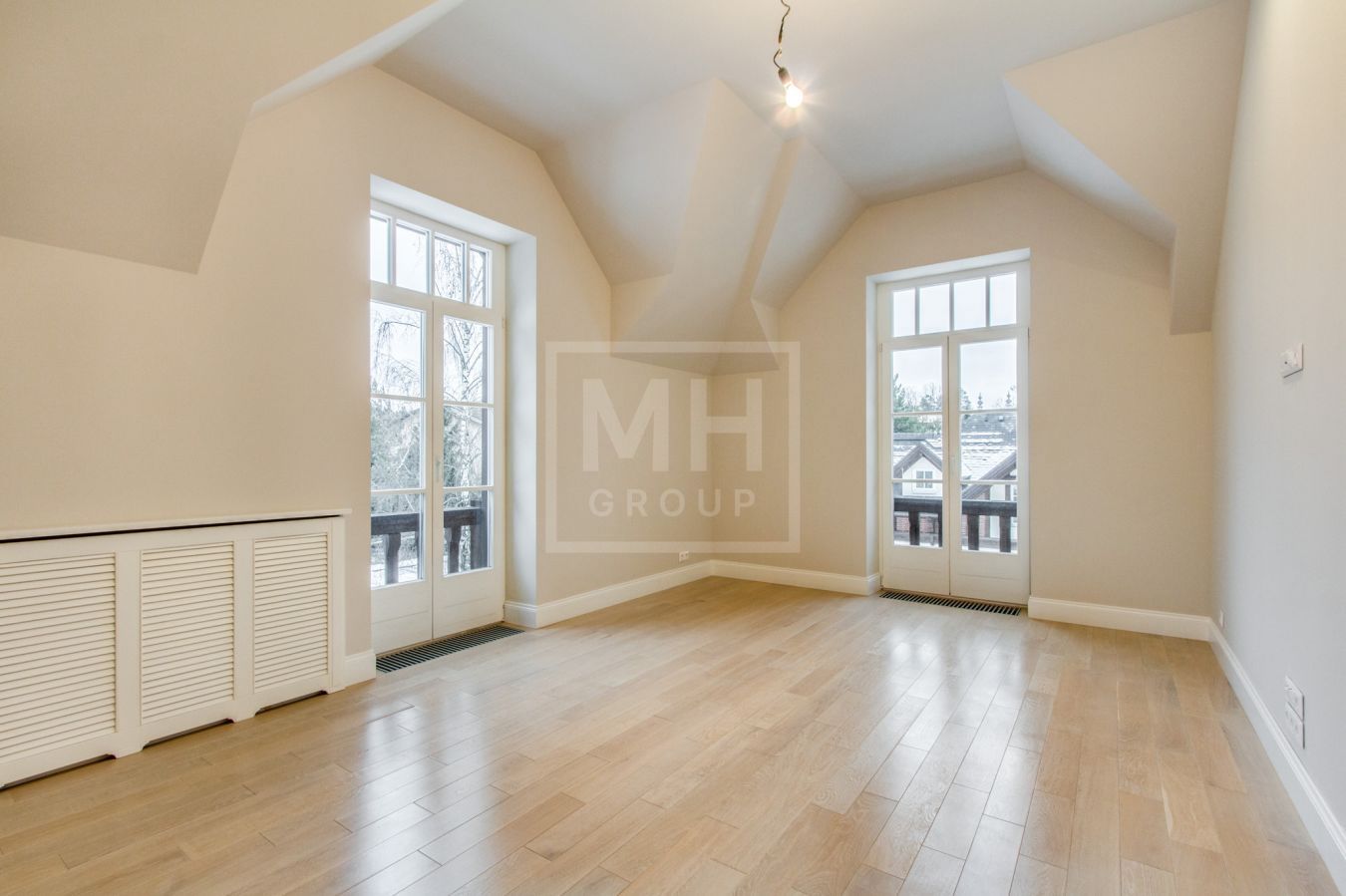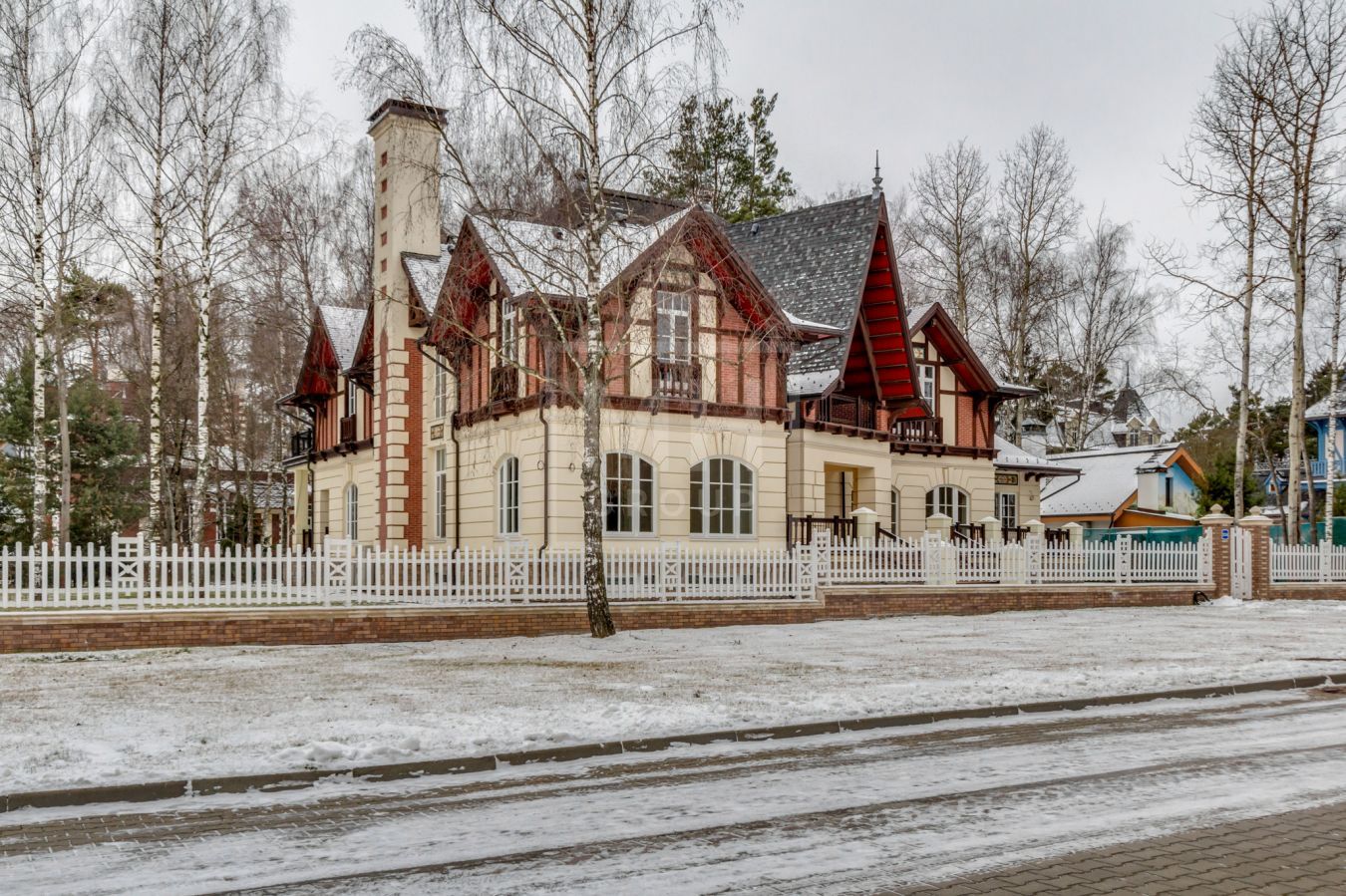 Особняк построен по авторскому проекту в нормандском стиле. Архитекторы вдохновлялись французскими виллами, расположенными на престижном французском курорте Довиль. Дом на основе монолитных перекрытий, с бетонными стенами, на крыше уложена долговечная гибкая черепица. Фасад отделан декоративными облицовочными панелями в стиле фахверк. Окна деревянные, с двухкамерными стеклопакетами. Рядом – живописное озеро, парк, развитая инфраструктура поселка, включающая открытый бассейн с подогревом, причал с прокатом лодок, ресторан, кафе, магазины, спа-клинику с тренажерным залом и бассейном.Особняк продается под ключ.