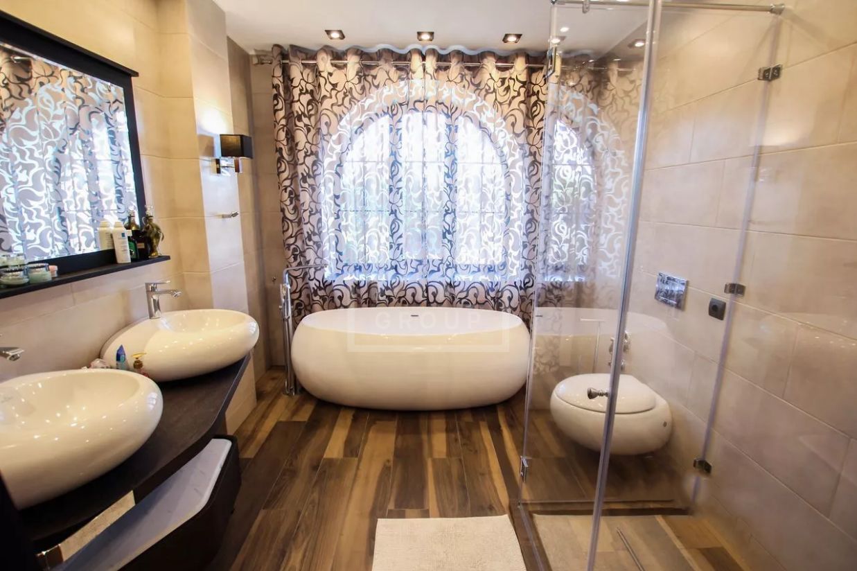 Дома полностью меблированы и оснащены дорогой итальянской, немецкой и швейцарской техникой. Мебель (Италия), сантехника Villeroy & Boch, мебель в с/у Испания, шторы (Италия), полы плитка (Италия) + натуральное дерево - доска, стены (Германия, Нидерланды), кухня Cesar (Италия), стиральная система V ZUG (Швейцария), камин - мрамор Турция, кондиционеры MITSUBISHI (холод + тепло).