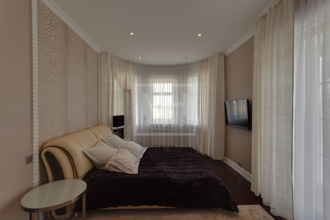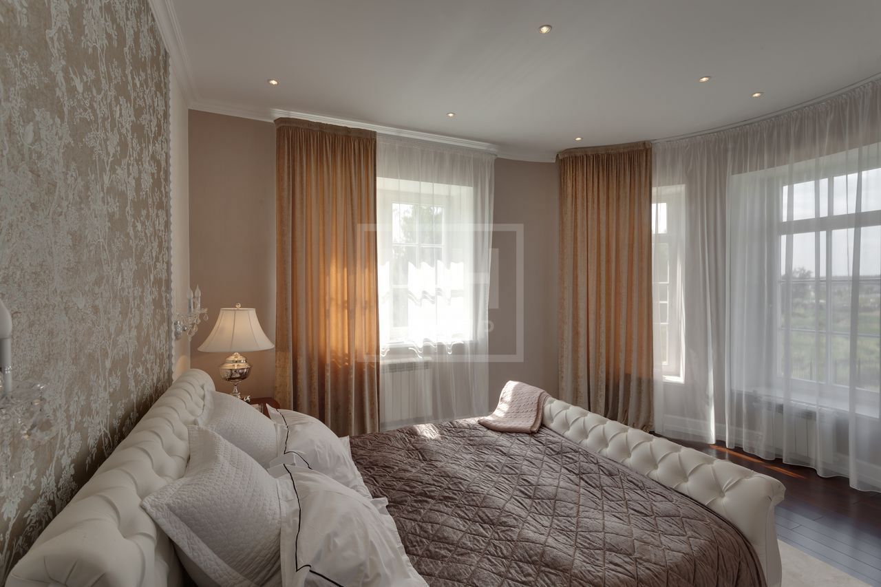 Дом в итальянском стиле, с полукруглыми стенами и огромной площадью остекления. Ремонт в стиле Ар-деко.
