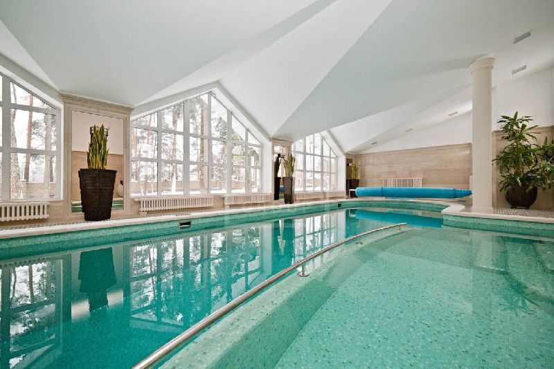 Этаж 1: Прихожая, гардеробная, гостиная, кабинет, бассейн, кухня, санузел, спальня с санузлом 2 шт
