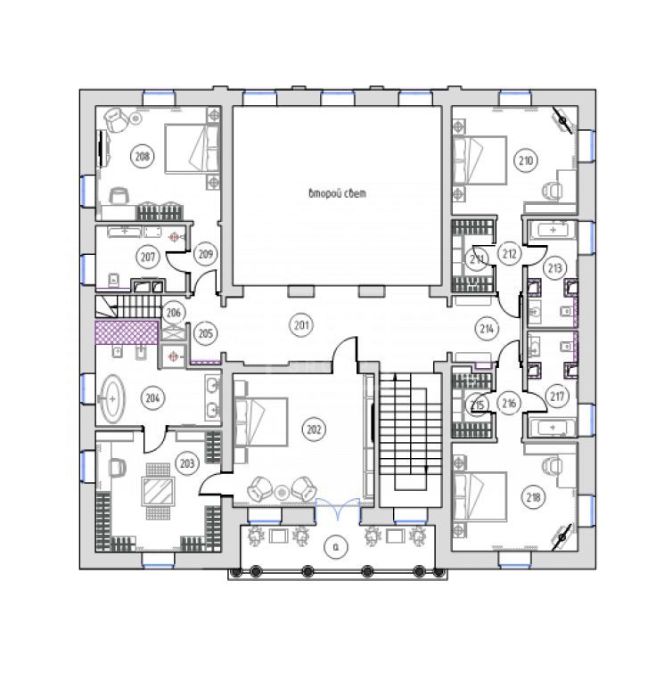 Этаж 2: холл, 4 спальни со своими с/у и гардеробными