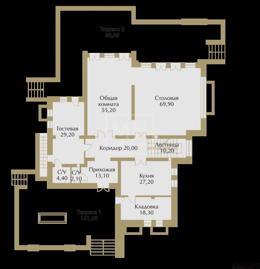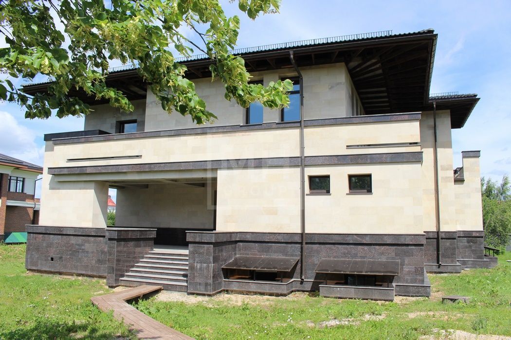 облицовка цоколя здания и стенок террас плитами из полированного гранита.