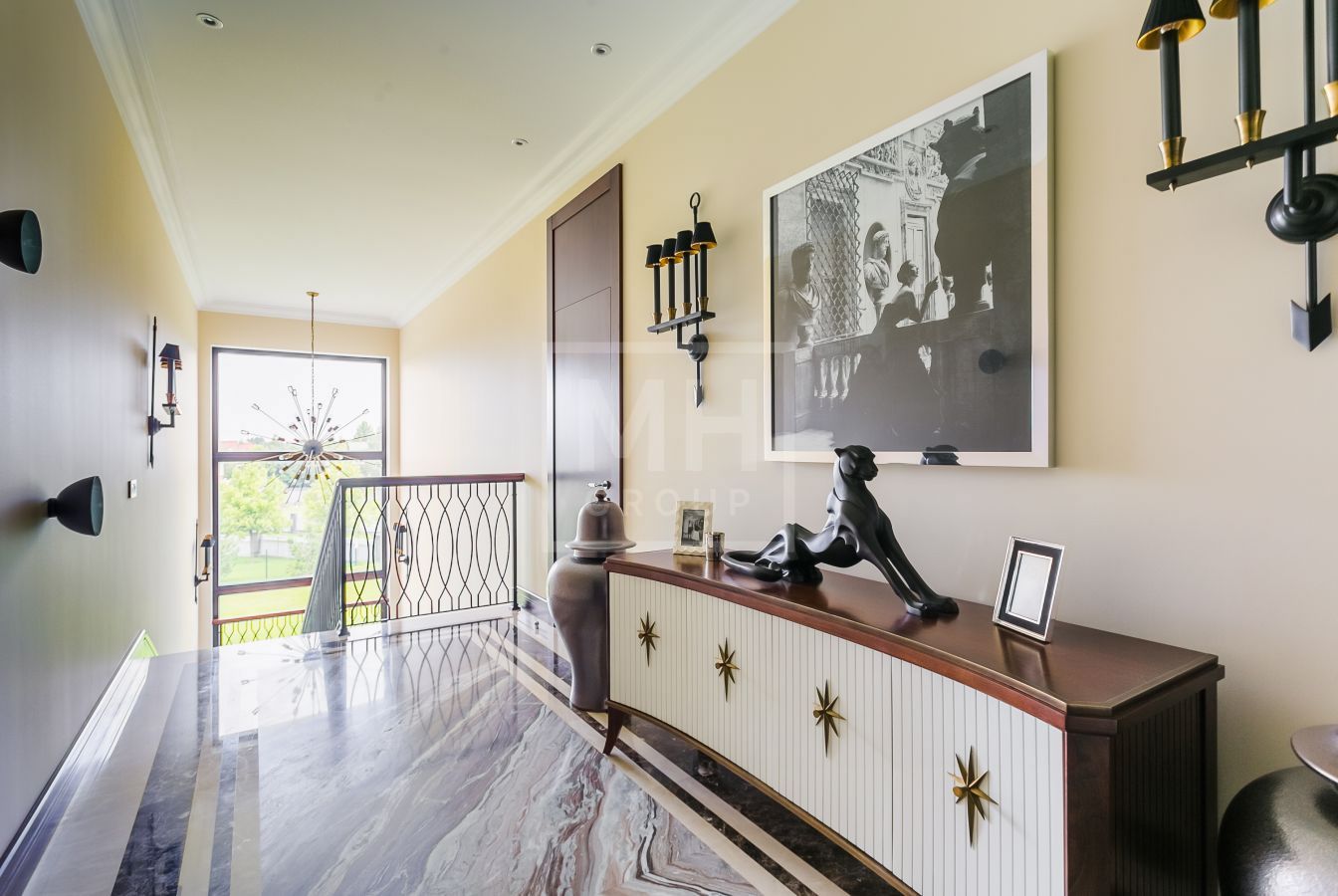 Современный дом, с высокими потолками, с отделкой "под ключ с мебелью" , достойной планировкой и большими площадями остекления в стиле Фрэнка Лойда Райта – знаменитого американского архитектора.Всего в поселке возведено 64 коттеджа 2х и 3х уровневых, выдержанных в едином архитектурном стиле: четкие формы, элегантная отделка фасадов, удобство и комфорт внутреннего пространства. На 2/3 посёлок граничит с Барвихинским лесопарком, который издавна считается лёгкими Запада столицы. К застройке примыкает 20 га лесного массива, где организован уютный парк, площадки для отдыха и детский игровой городок.