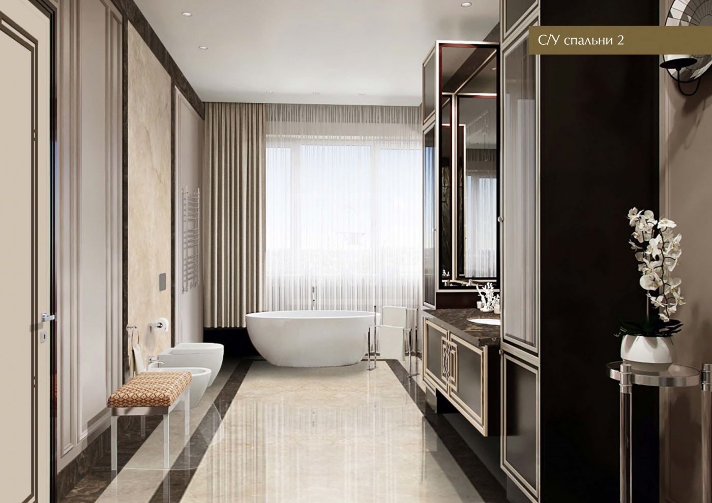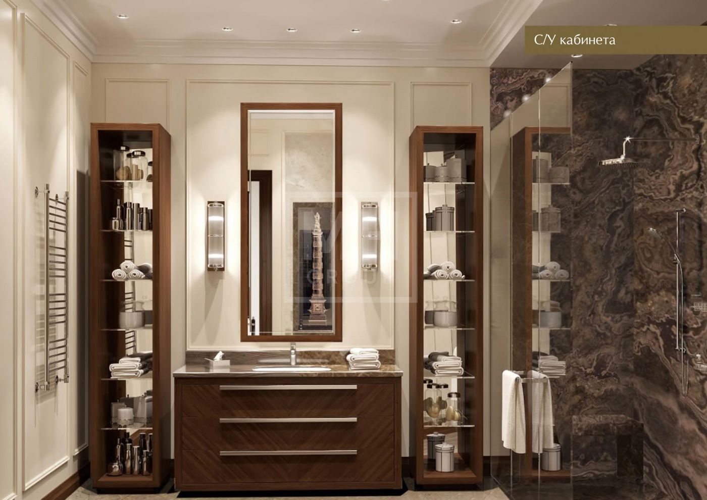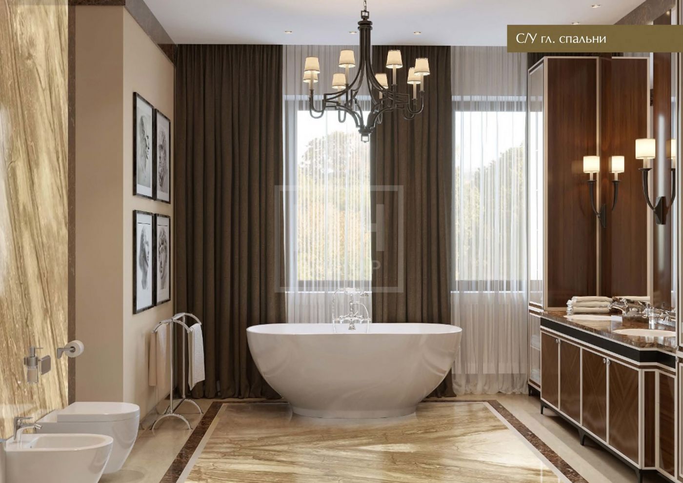 Этаж 2: холл, 4 спальни с ванными комнатами и гардеробными, балконы.