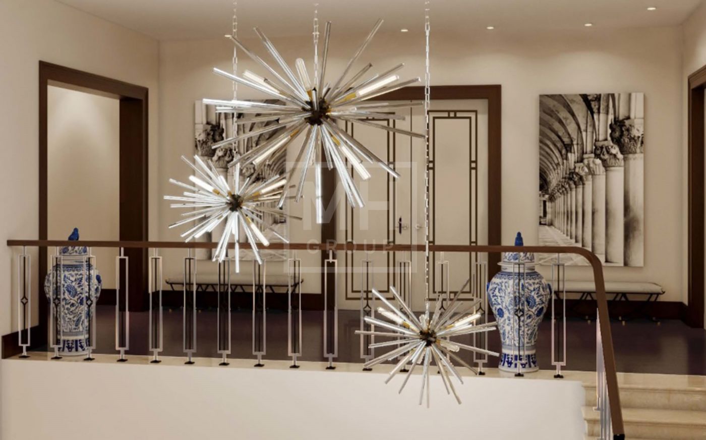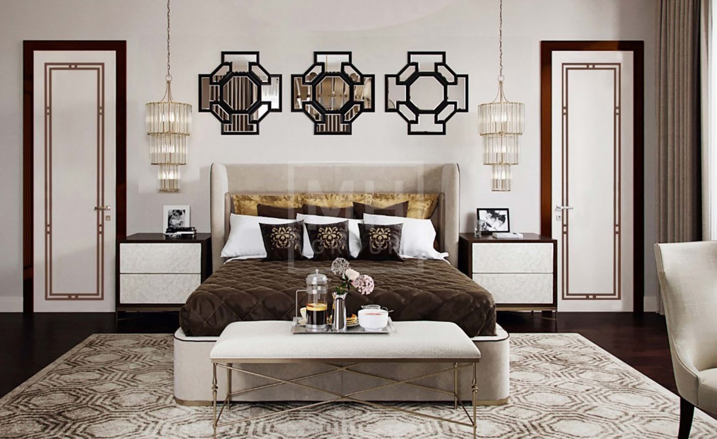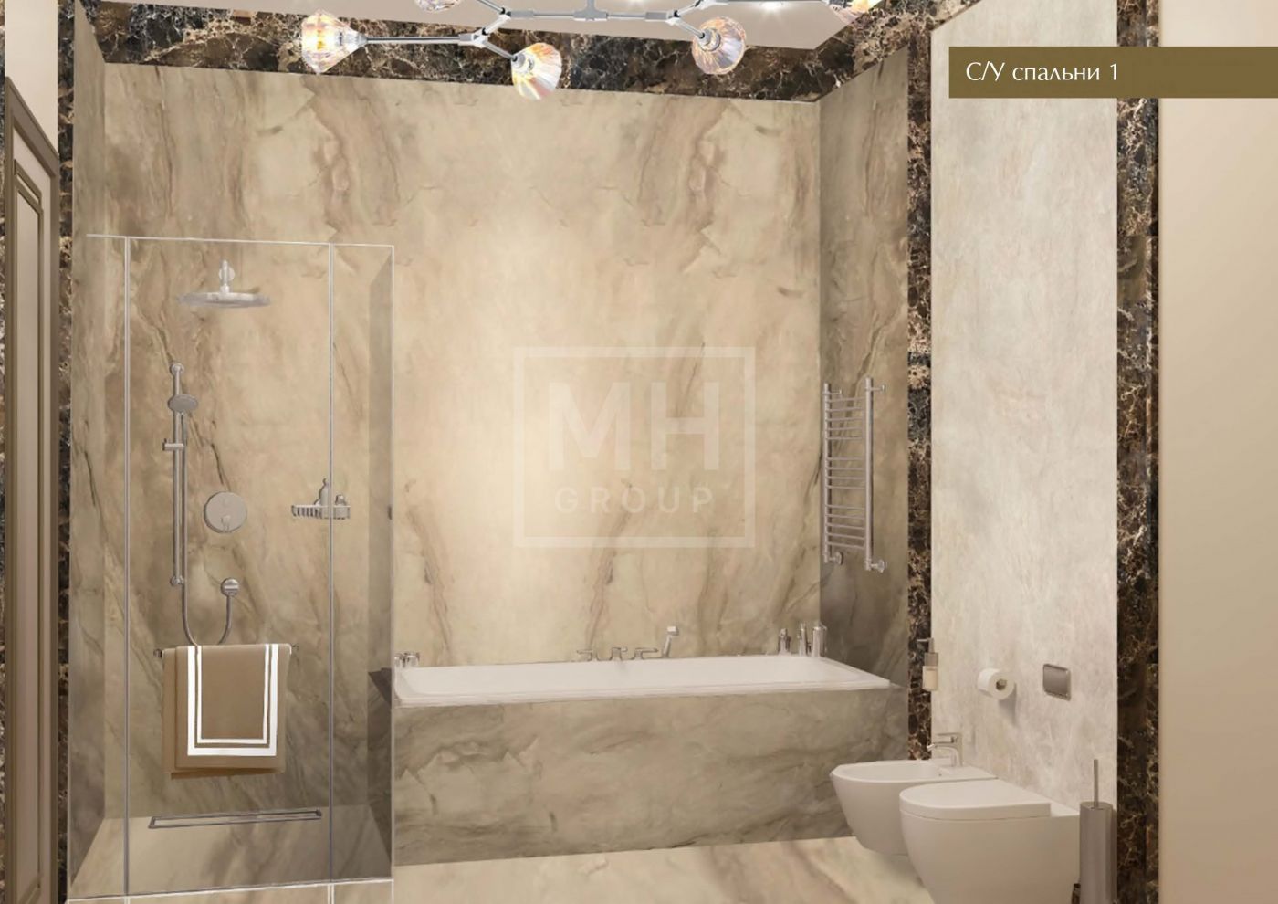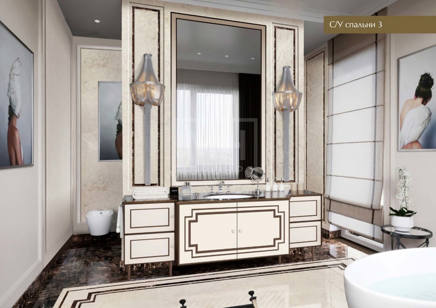 Этаж 2: холл, 4 спальни с ванными комнатами и гардеробными, балконы.