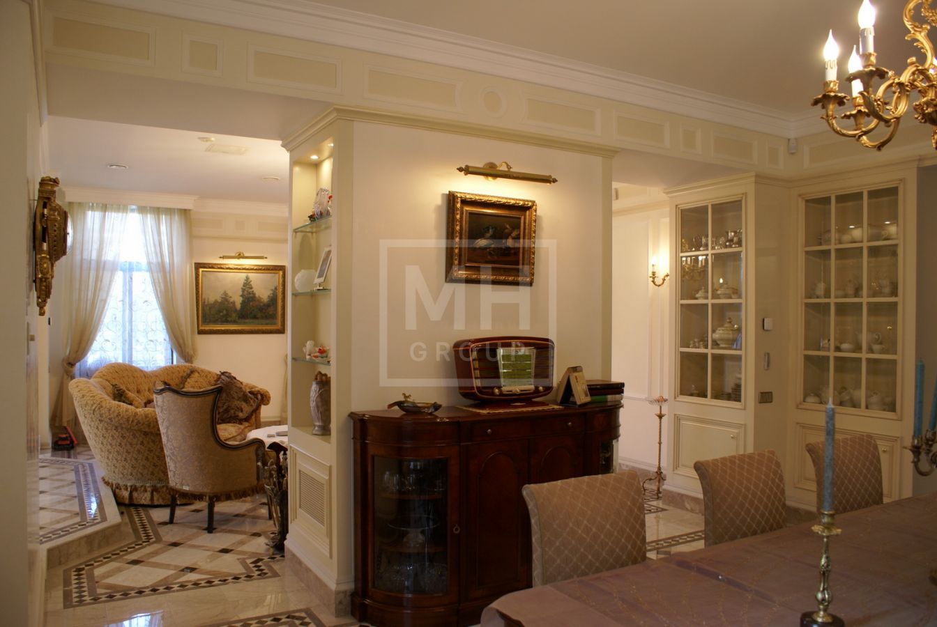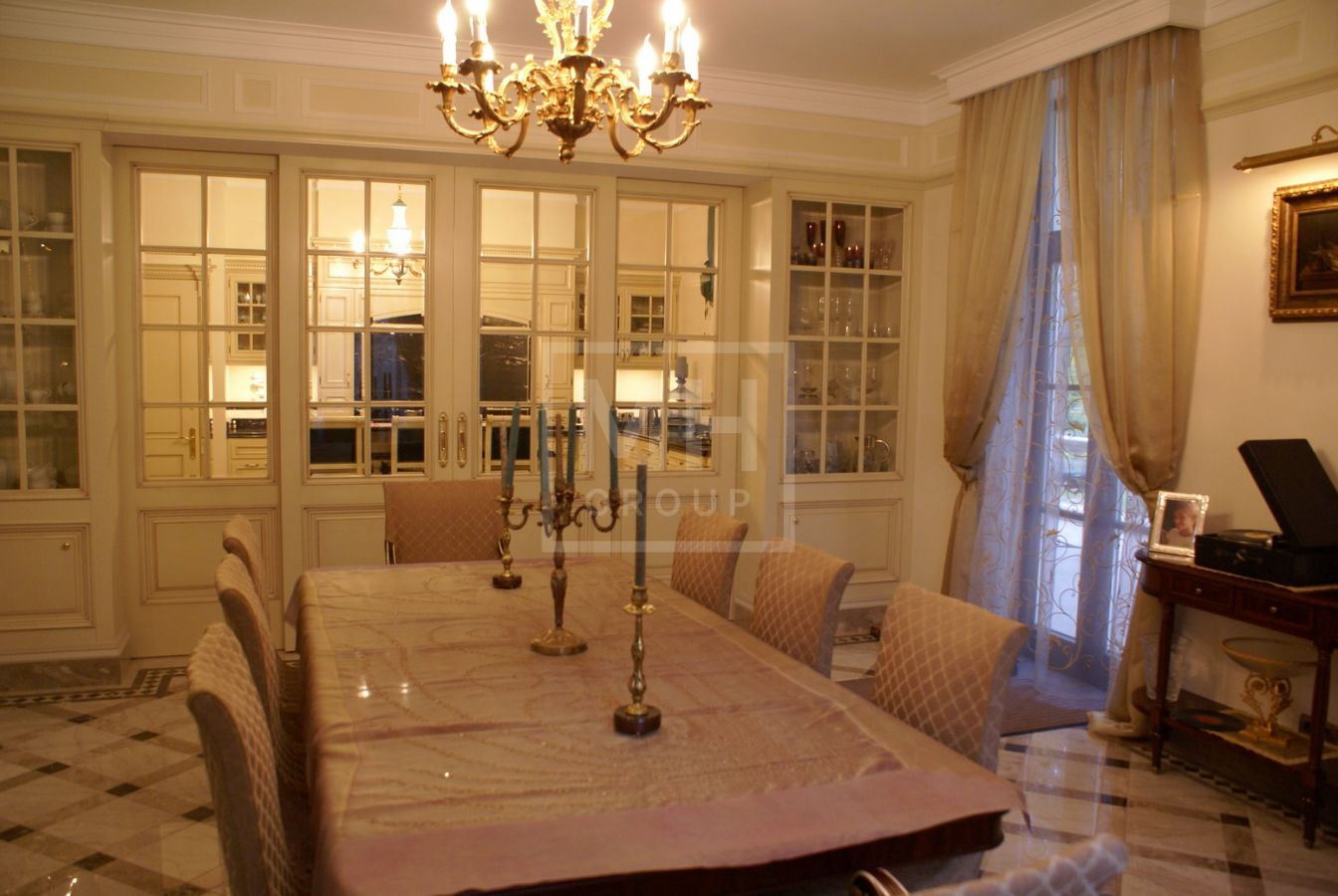 К продаже предлагается классический дом на большом участке в старой части поселка Николино. Дом выполнен в классических светлых оттенках, с использованием природных материалов, таких как мрамор, натуральное дерево. В наполнении дома преимущественно использовались итальянские марки мебели, сантехники и декора. Дом рассчитан для круглогодичного проживания большой семьи. В доме так же есть зона отдыха со Спа зоной и биллиардной. На участке много прогулочных маршрутов, свой пруд с водопадом, лавочки, беседка с зоной барбекю. Инфраструктура поселка продумана и создана для комфортного проживания, к услугам жителей: сервисный центр и круглосуточная диспетчерская служба, магазин, рестораны и кафе, банный комплекс, бассейны, оздоровительные и спортивно-развлекательные заведения, автозаправка и мойка автомобилей.