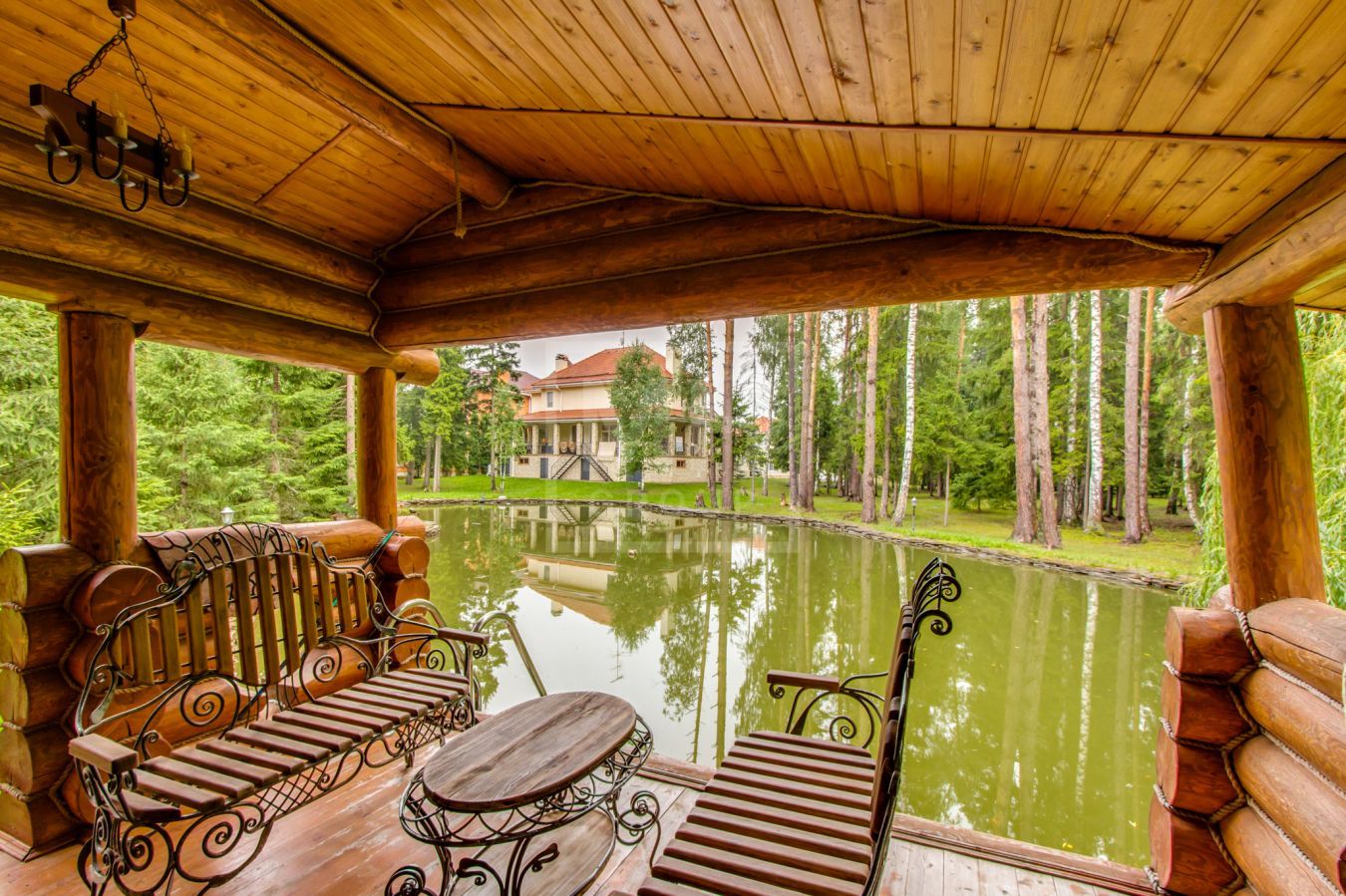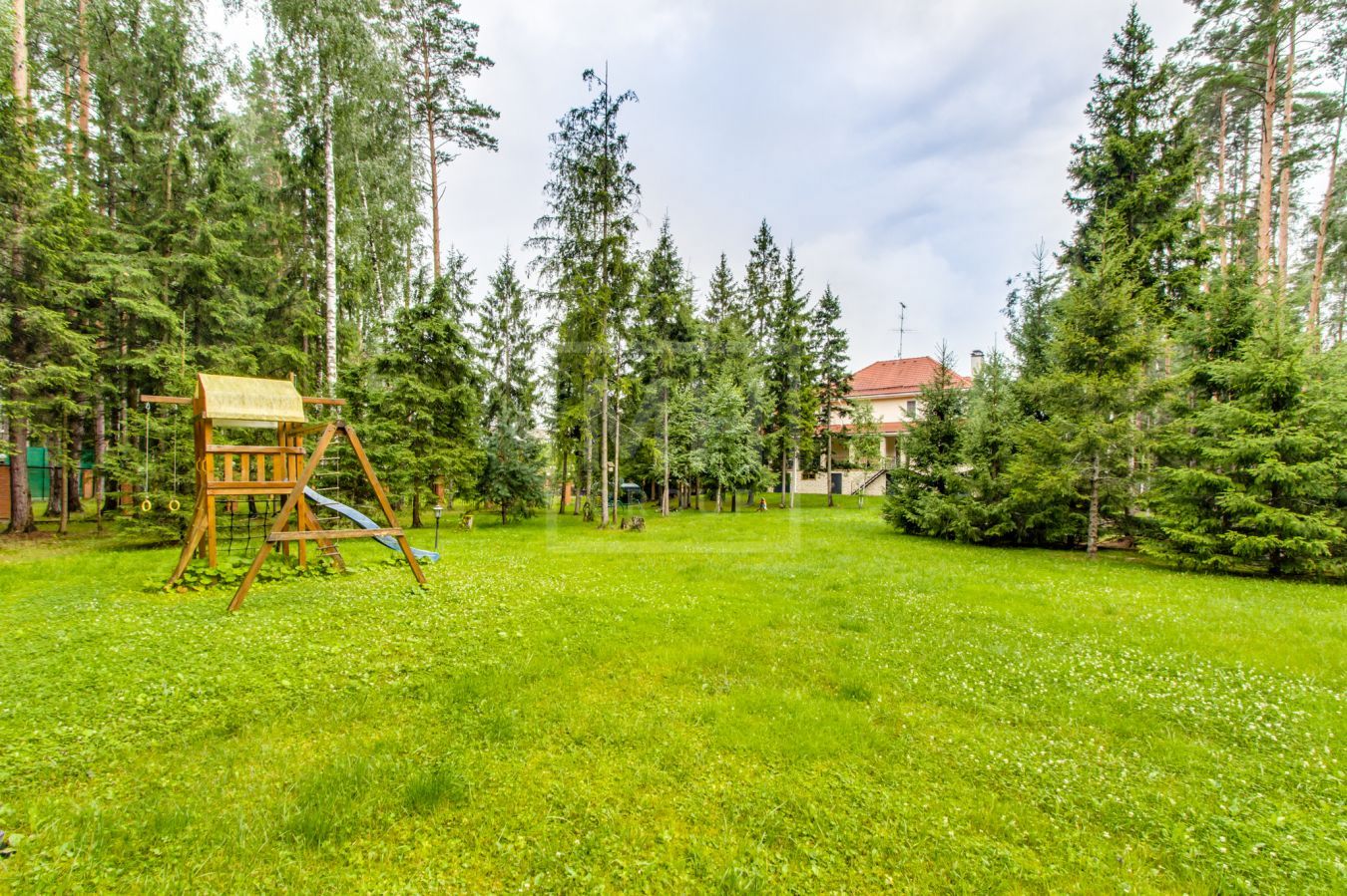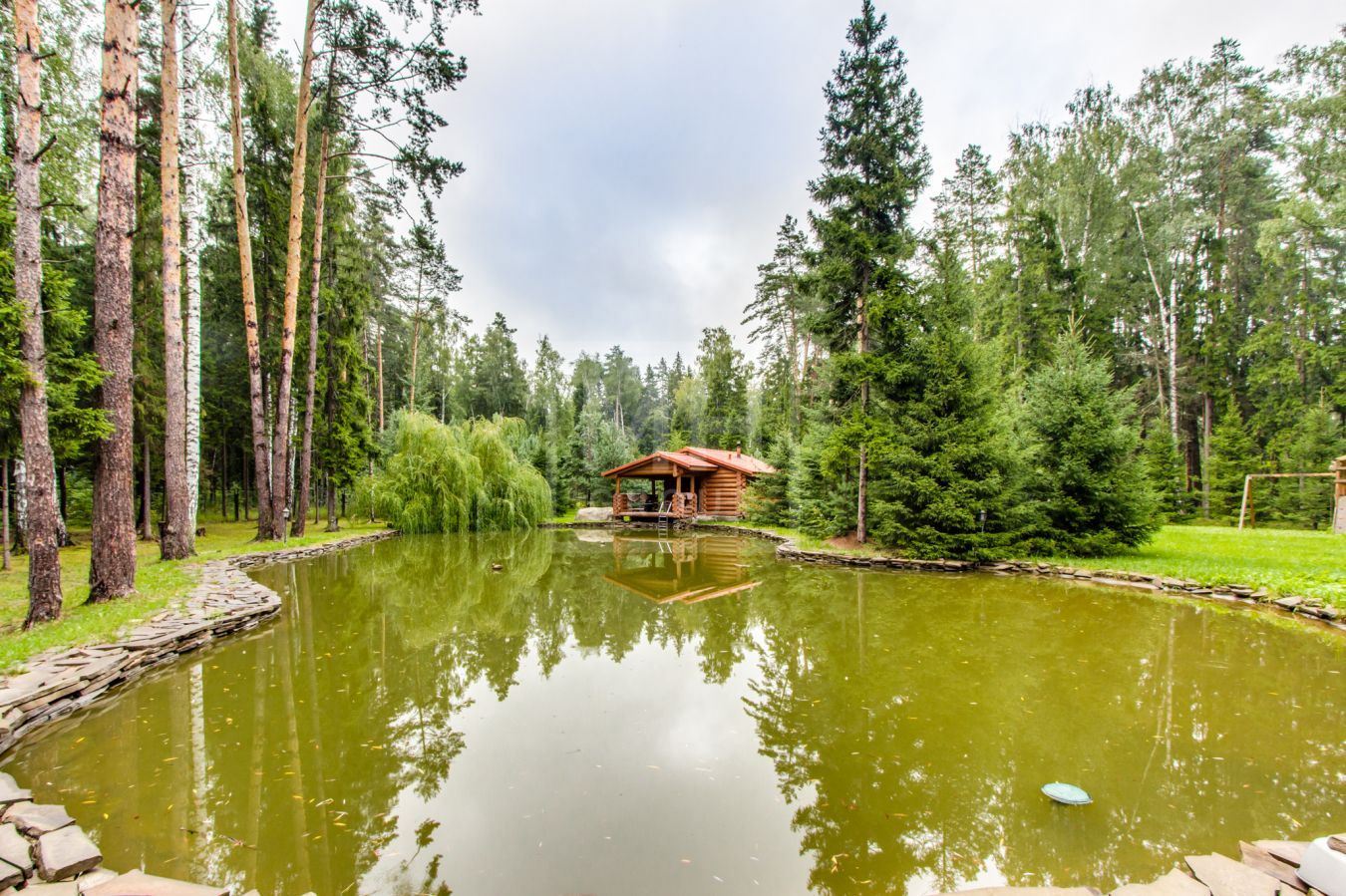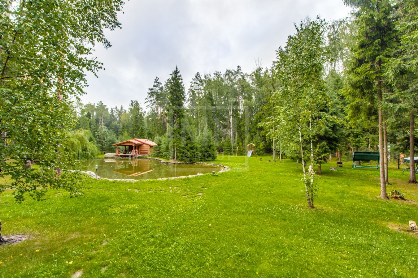 Предлагается к продаже дом площадью 450 кв. метров в коттеджном поселке "Росинка", в 15 километрах от МКАД по Новорижскому шоссе. В доме три спальни, каждая из которых с индивидуальными санузлами, кабинет на первом этаже, кухня, столовая,гостиная с выходом на террасу, бильярдная, детская игровая. Дом стоит на лесном участке в 90 соток, 8 оформлены в собственность. Участок граничит с сосновым лесом. На участке детская площадка, пруд с карпами, на берегу которого стоит баня на дровах с кухней, душевой и санузлом; участок благоустроен, растут корабельные сосны, ели, ивы,березы, туи, плодовые деревья. Есть выход в лес. На участке также расположено здание гаража на шесть автомобилей, над которым находятся две квартиры для персонала. В каждой спальня, кухня и санузел. Все коммуникации подведены: электричество (40 кВт), магистральный газ, вода (из артезианской скважины), центральная канализация. Дом продается с отделкой под ключ.