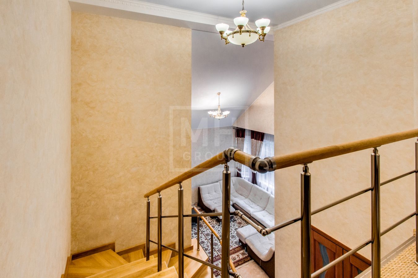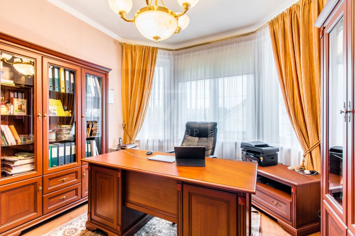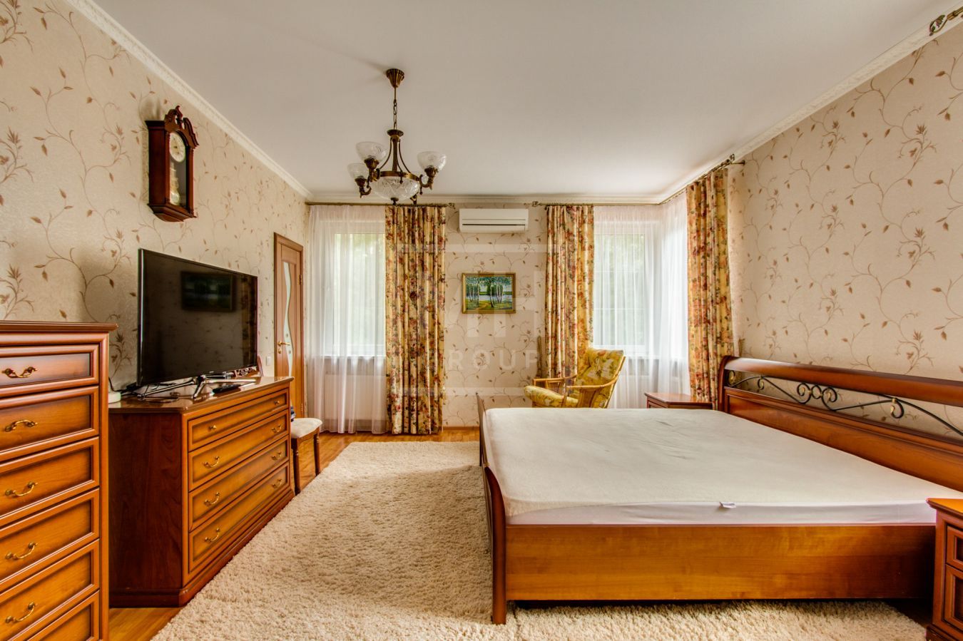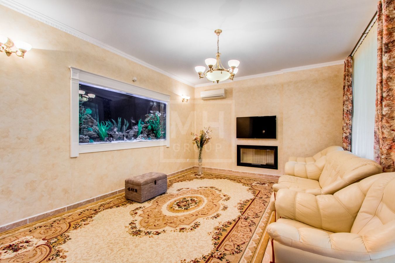 Предлагается к продаже дом площадью 450 кв. метров в коттеджном поселке "Росинка", в 15 километрах от МКАД по Новорижскому шоссе. В доме три спальни, каждая из которых с индивидуальными санузлами, кабинет на первом этаже, кухня, столовая,гостиная с выходом на террасу, бильярдная, детская игровая. Дом стоит на лесном участке в 90 соток, 8 оформлены в собственность. Участок граничит с сосновым лесом. На участке детская площадка, пруд с карпами, на берегу которого стоит баня на дровах с кухней, душевой и санузлом; участок благоустроен, растут корабельные сосны, ели, ивы,березы, туи, плодовые деревья. Есть выход в лес. На участке также расположено здание гаража на шесть автомобилей, над которым находятся две квартиры для персонала. В каждой спальня, кухня и санузел. Все коммуникации подведены: электричество (40 кВт), магистральный газ, вода (из артезианской скважины), центральная канализация. Дом продается с отделкой под ключ.