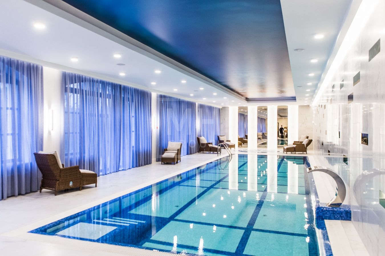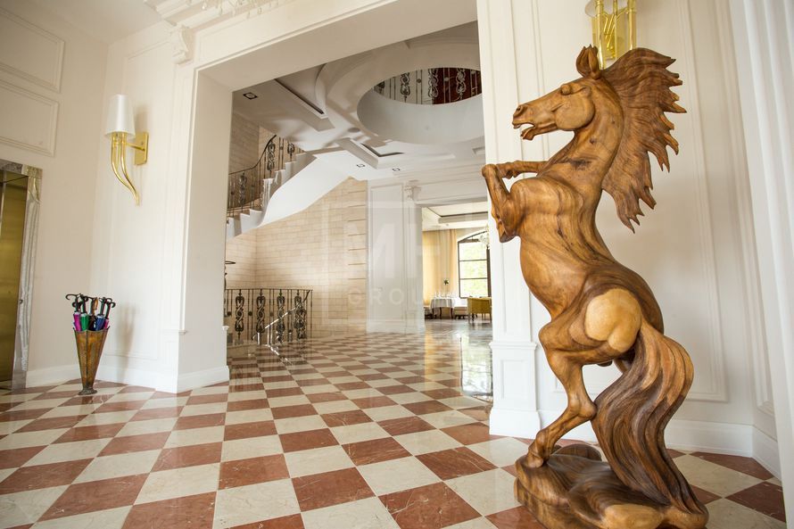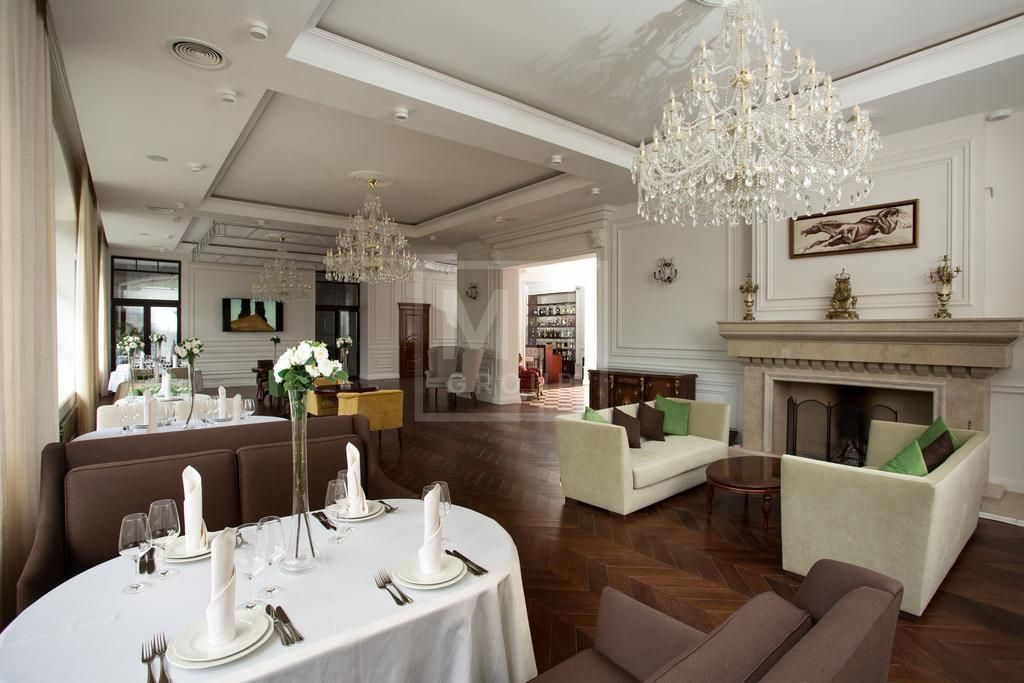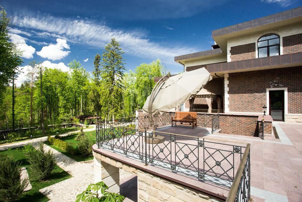 Центральный корпус 1500 кв.м -два зала, спа-бассейн, сауна, хамам, две кухни, пять спален и бильярдная.